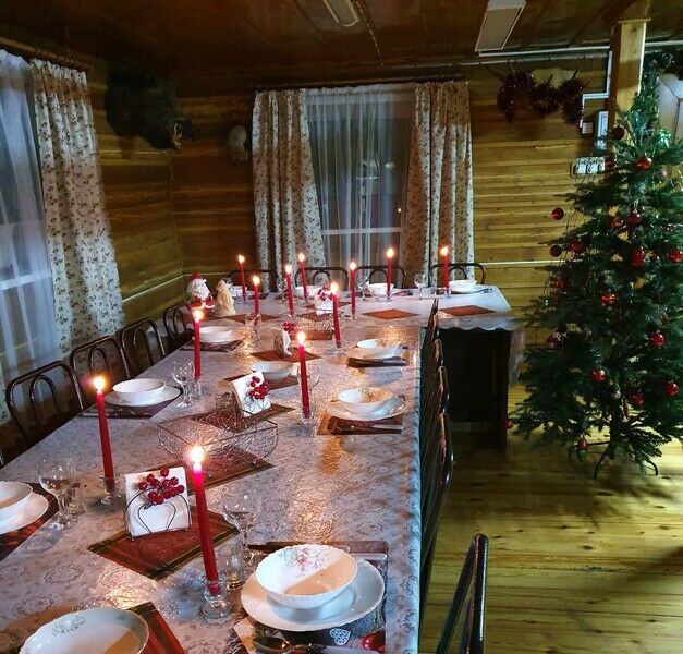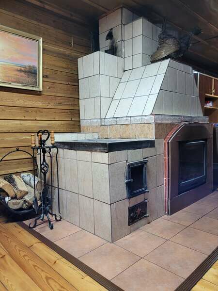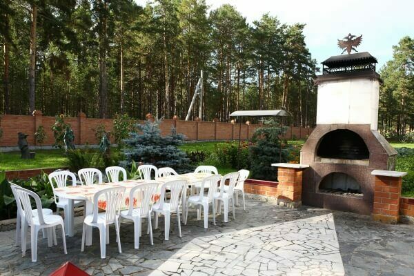 К вашим услугам административно-бытовой двухэтажный дом со спортивным залом, кухней-столовой, спальных мест в этом доме - 14. Спальные комнаты на втором этаже. В гостевом охотничьем доме размещается 18 человек. К вашим услугам кухня-столовая, камин, бильярд, банкетный зал до 50 человек. Рядом с плавательным бассейном расположена уютная беседка с камином и мангалом, вмещающая до 20 человек. Она предназначена для тех, кто захочет отдохнуть по программе выходного дня.
