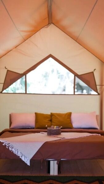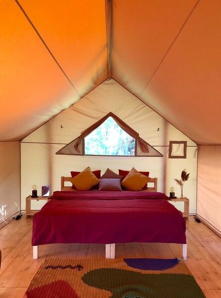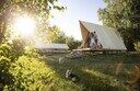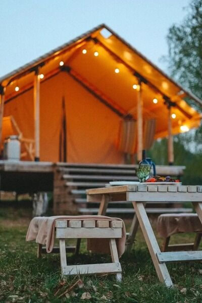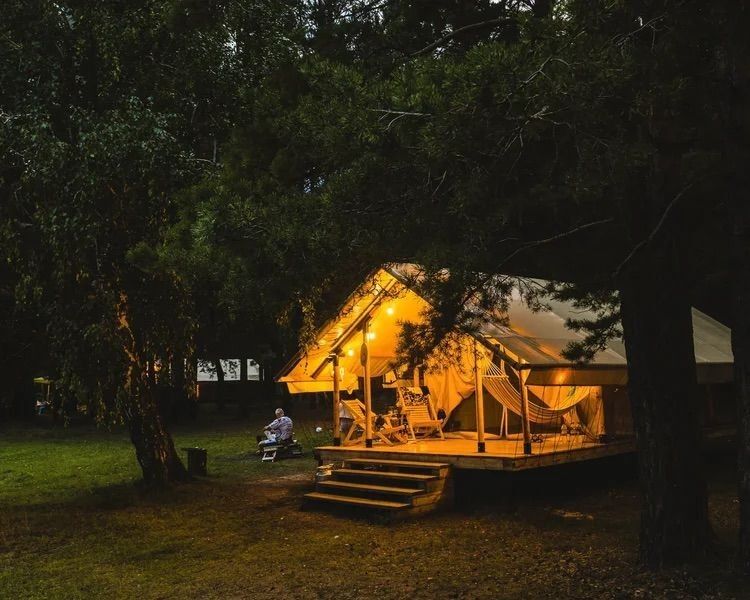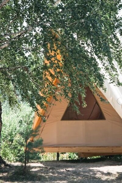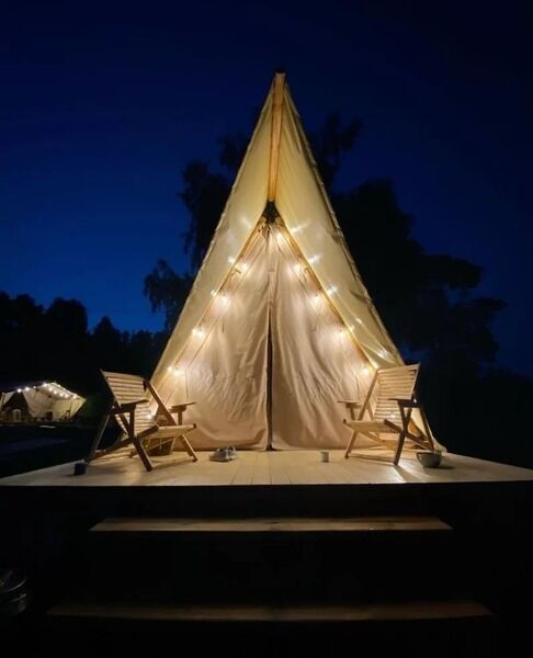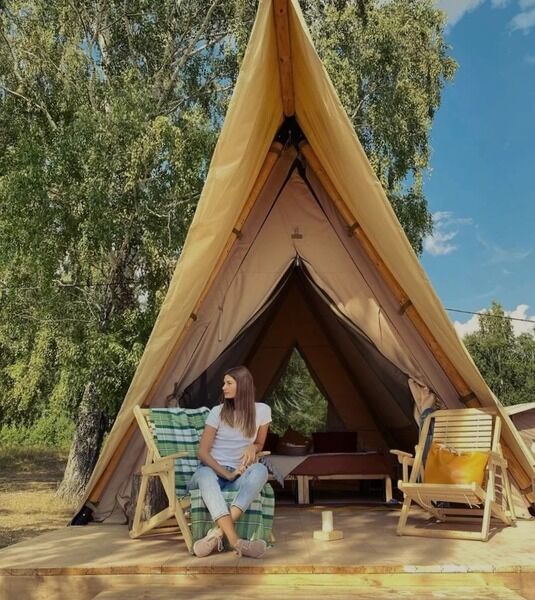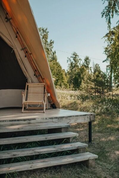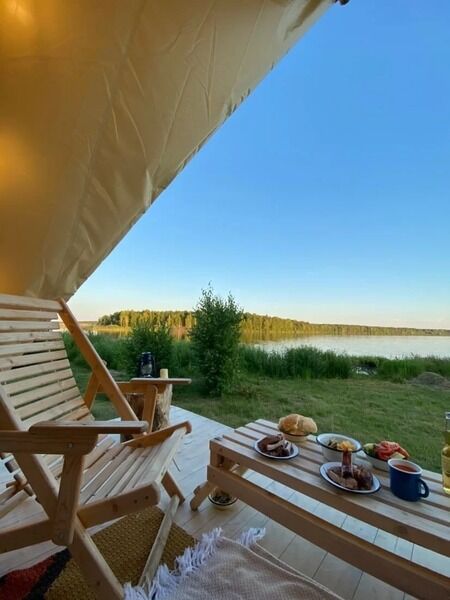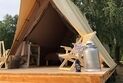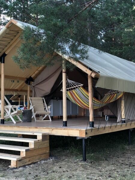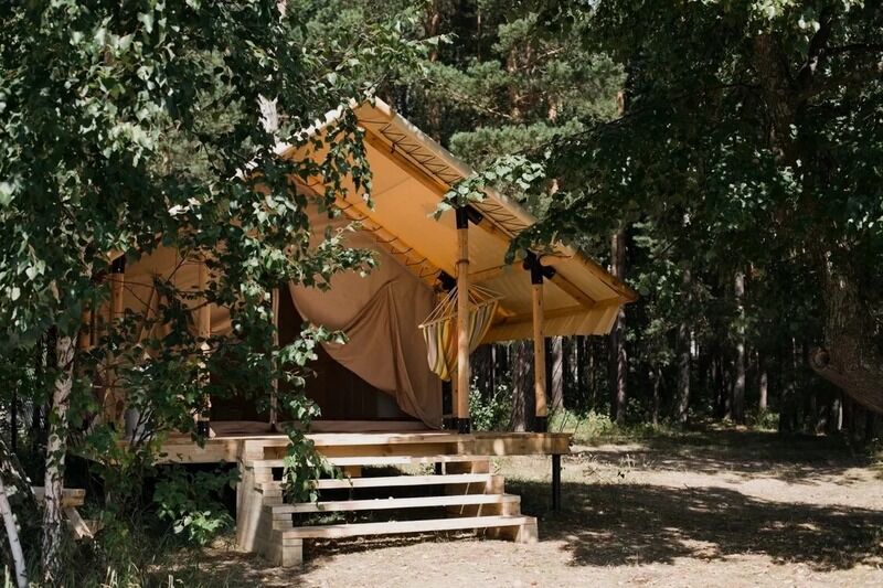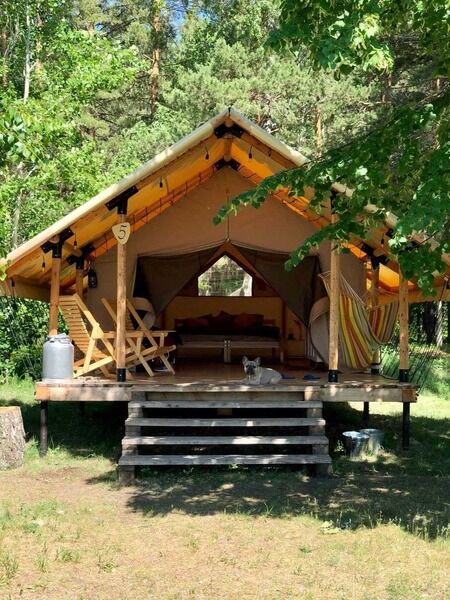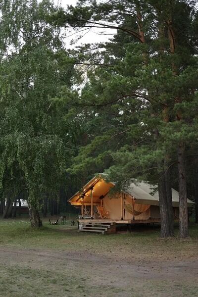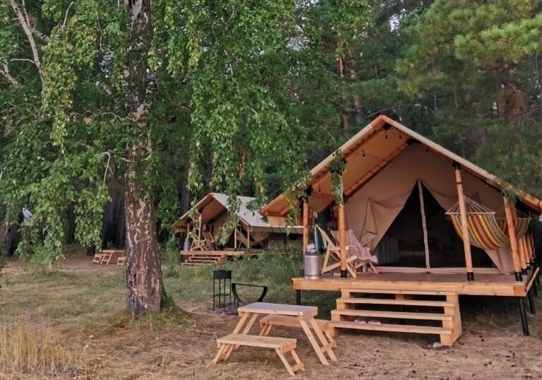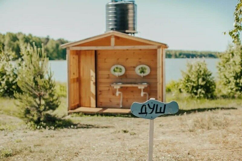 Палаточный городок вмещает до 10 палаток, имеет общую мангальную зону. Территория обработанная от клещей и насекомых, душ летний (вода нагревается от солнца), туалет деревянный (2 шт.)