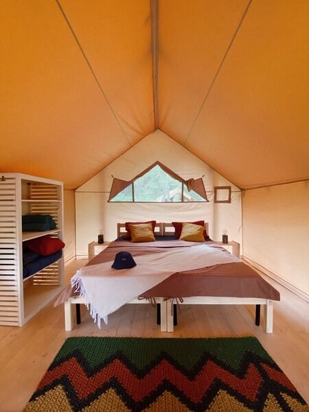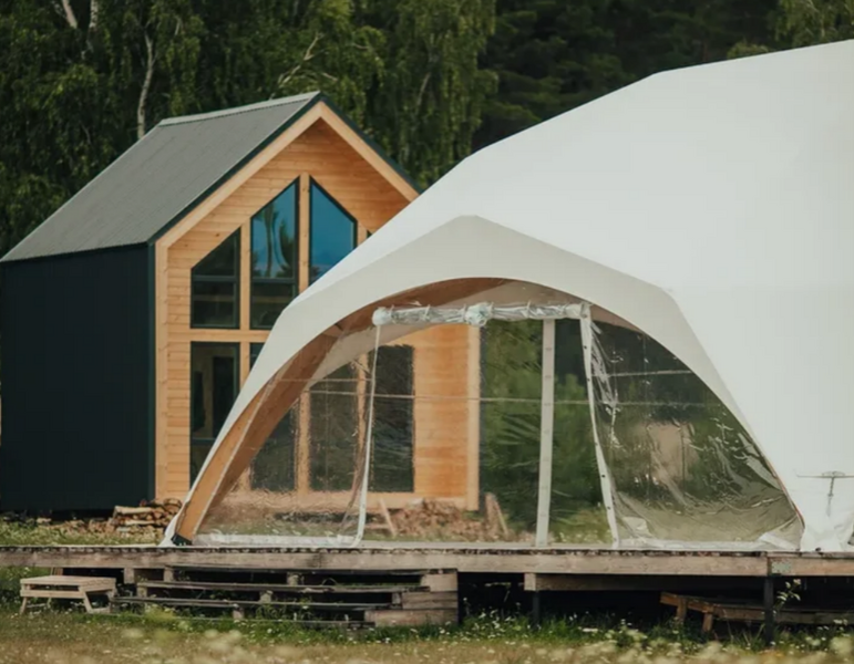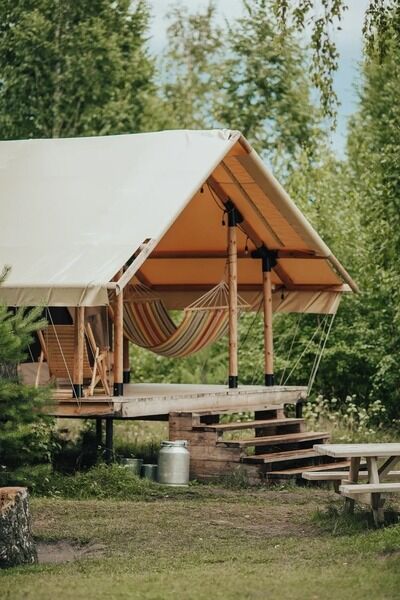 Комплекс занимает живописную экологически чистую территорию, окруженную хвойным лесом. Гостей ожидает уютные глэмпинги, оснащенные мини-кухней. В номерах есть необходимая мебель — удобные кровати, стеллаж, санузел и летний душ находятся на территории, в некоторых глэмпингах в номера находится умывальник. Возле глэмпингов оборудована терраса с гамаком, шезлонгами и мангальной зоной.