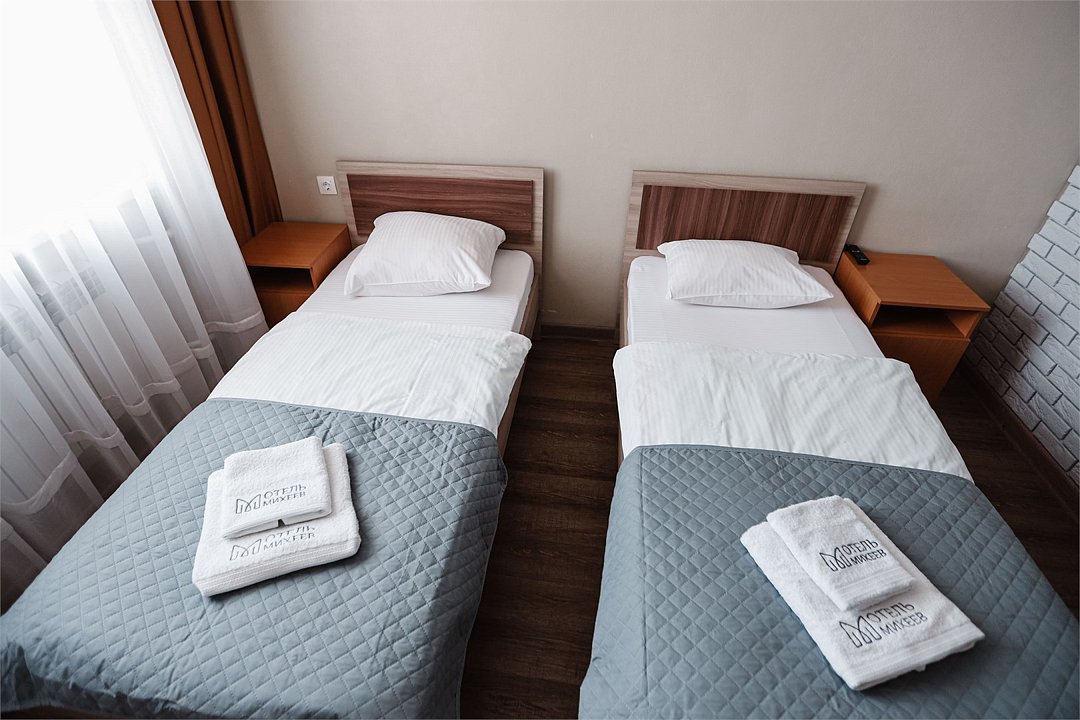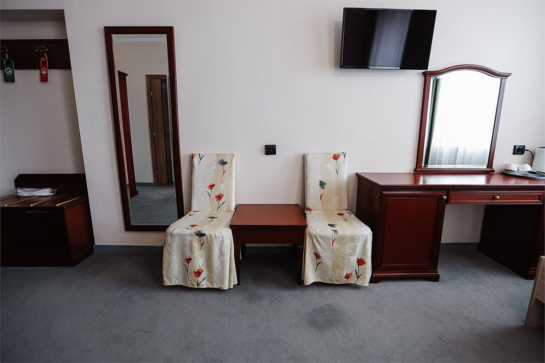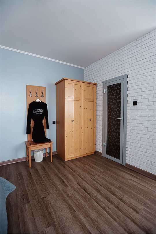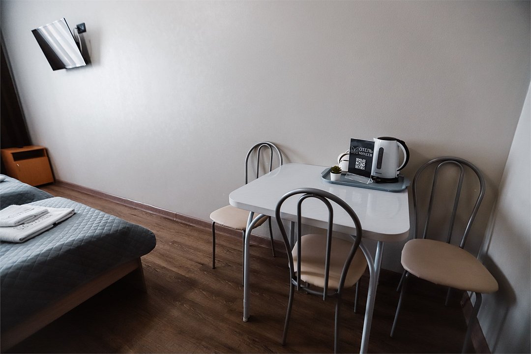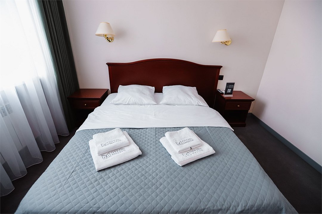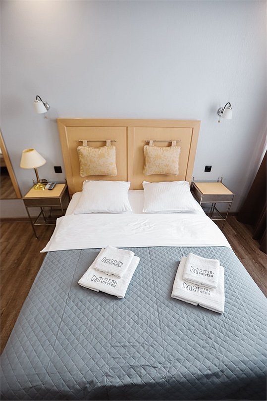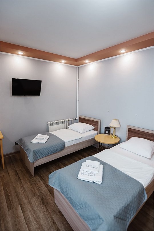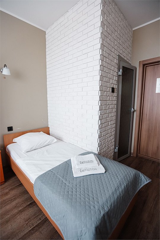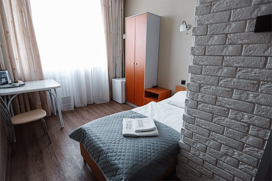 Уютный двухместный номер со всеми удобствами для проживания с двуспальной кроватью. В номере есть холодильник, телевизор, электрочайник, бесплатный высокоскоростной wi-fi, постельные и туалетные принадлежности.Услуги и удобства