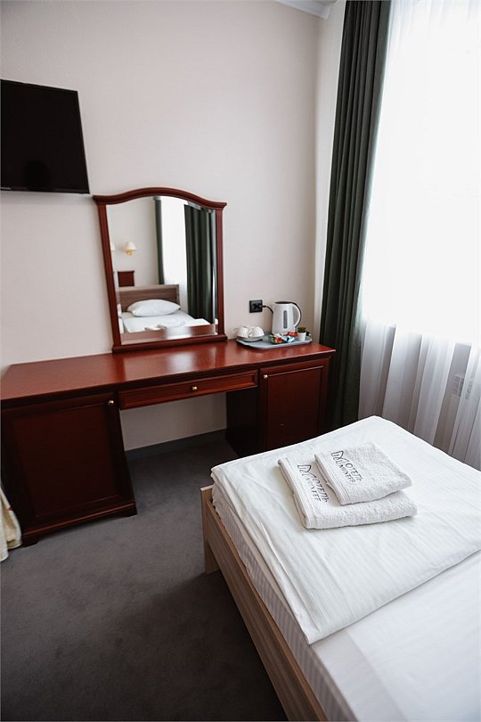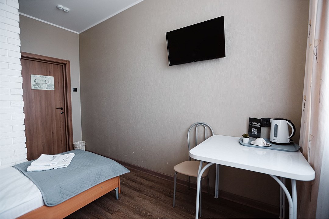 Wi-Fi, светильник, банные полотенца, односпальная кровать, шкаф для одежды, чайный набор, чайник, унитаз, раковина, отопление, душ, вид на город, кулер на этаже, вид во двор, стул, стол, туалетные средства, туалет, цифровое тв, мини-холодильник, москитная сетка, номер для некурящих, антибактериальное средство для рук, уборка номера, вешалки-плечики, мылоВ номере