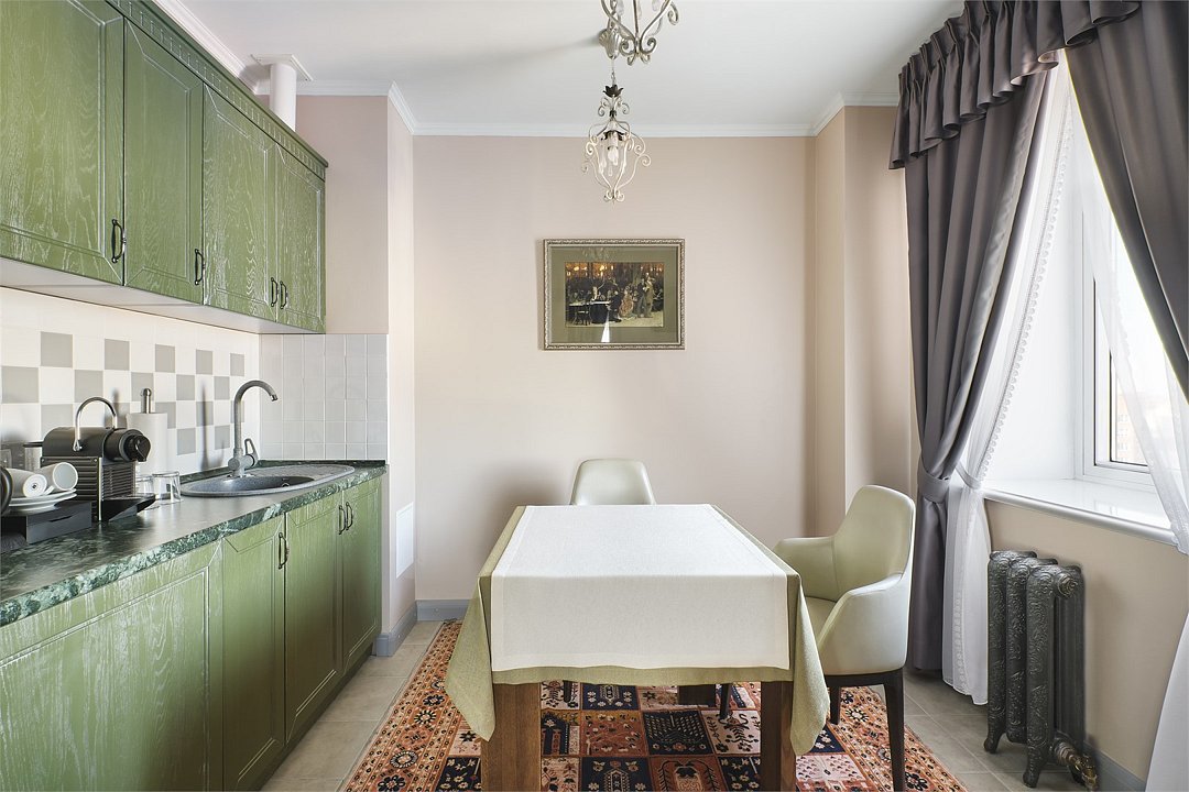 Wi-Fi, телефон, система климат-контроля, фен, кофемашина, ванна, теплый пол, халаты, банные полотенца, тапочки, косметические средства, кровать «King size», ортопедический матрас, стулья, шкаф для одежды, журнальный столик, письменный стол, багажная тумба, зеркало, мини-бар, чайный набор, сейф, вид во двор, стол, туалетные средства, цифровое тв, диван-кровать, раскладной диван, телевизор с плоским экраном, мини-холодильник, пуфик, чайная станцияВ номере