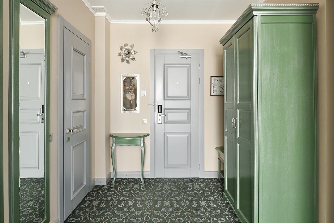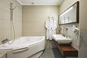 1 комната, гостевая зона,кровать queen size 180x200 с ортопедическим матрасом, диван 140*200, 1 плазменная TV-панель, спутниковое телевидение, интернет W-Fi, телефон, индивидуальный сейф, набор для приготовления чая и кофе,2 бутылки воды по 0,5 л. Ванная комната оснащена большой ванной, феном, подогреваемым полом, сушилкой, полотенцами, халат, тапочки, набором ванных и косметических принадлежностей, бритвенный набор-по запросу. Салфетка для обуви, лопатка для обуви. Швейный набор, ватные палочки, расческа в тумбочке под телефоном. Мини-бар за дополнительную плату. Посещение Wellness-центра (финская сауна, хамам и бассейн) – 500 руб./2 ч. с человека.Услуги и удобства