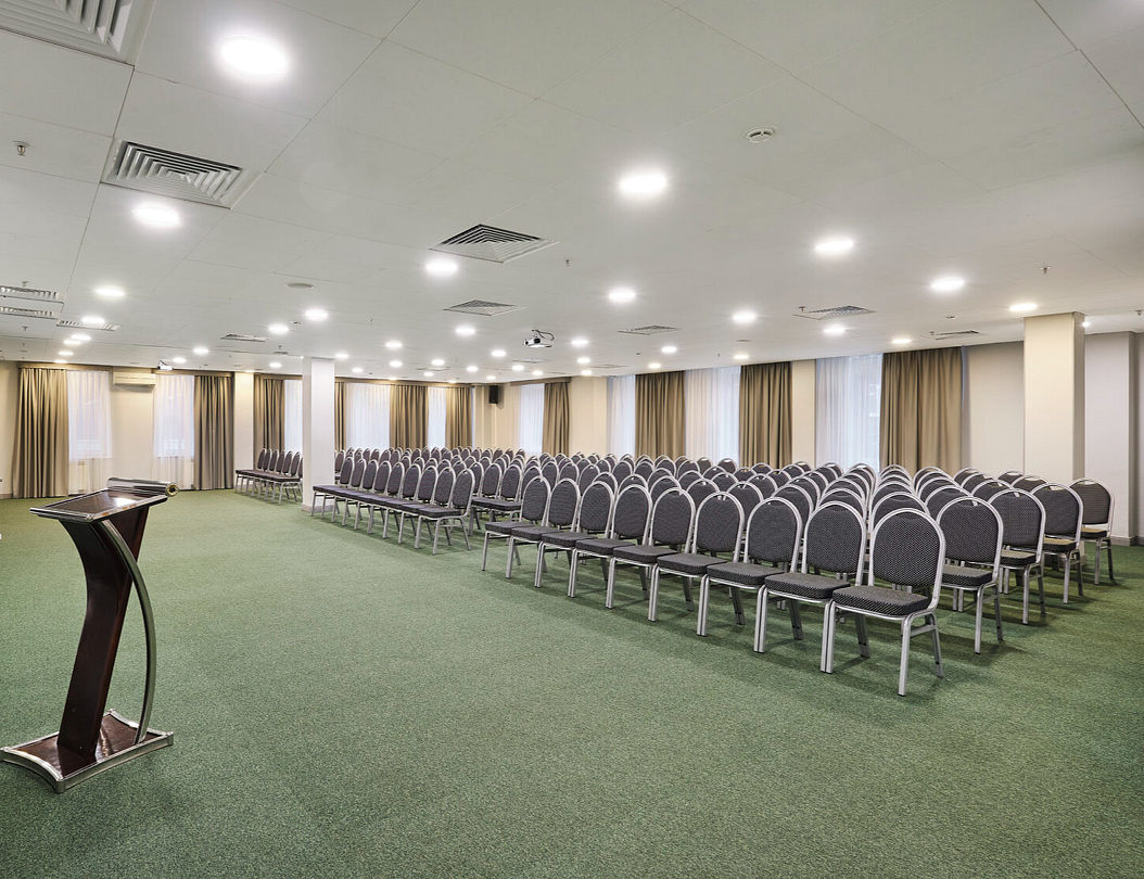 Конференц-залы обеспечены всем необходимым для проведения деловых встреч и мероприятий, а просторный холл подойдет для проведения фуршетов и кофе-брейков.