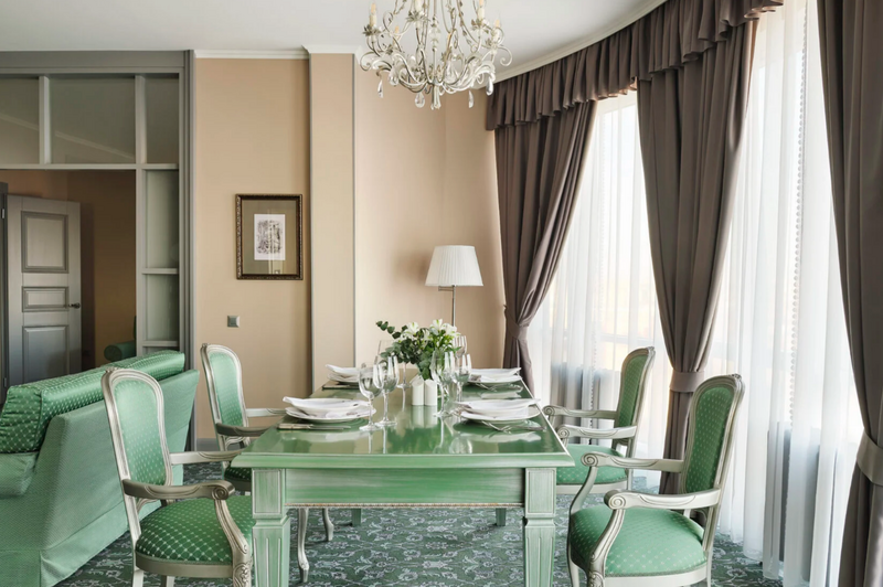 Wi-Fi, телефон, система климат-контроля, фен, ванная комната, банные принадлежности, халаты, тапочки, гигиенические средства, кровать «King size», ортопедический матрас, стулья, шкаф для одежды, вешалки, письменный стол, багажная тумба, зеркало, мини-бар, чайный набор, сейф, вид во двор, стол, туалетные средства, туалет, цифровое тв, диван-кровать, раскладной диван, телевизор с плоским экраном, мини-холодильник, чайная станцияВ номере