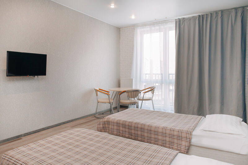 Многоэтажное здание отеля, оснащенное лифтом, возвышается в современном жилом квартале города на одной из значимых магистралей района — улице Полевой. В распоряжении гостей стильные комфортабельные номера с удобствами, в том числе есть двухуровневые и просторные трехкомнатные номера, оборудованные кухней. Все номера оснащены санузлом с душем и кондиционером, в комнатах есть плазменный телевизор, доступен беспроводной интернет.