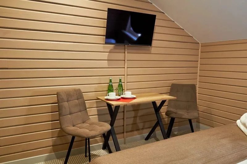 В номере вас будут ждать телевизор и халат. Оснащение зависит от выбранной категории номера.