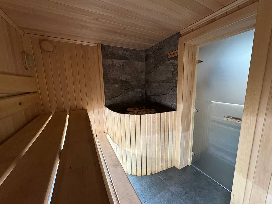 В парной вас ждет каменка, наполненная белым кварцем и яшмой, создающая неповторимый, целебный пар. Электрическая печь с эффектом русской бани позволяет создать идеальный микроклимат для парения. Теплый пол обеспечит комфорт, а температура в 90 градусов к вашему приходу – приятный старт для парения. Регулируйте температуру по своему вкусу и наслаждайтесь отдыхом.