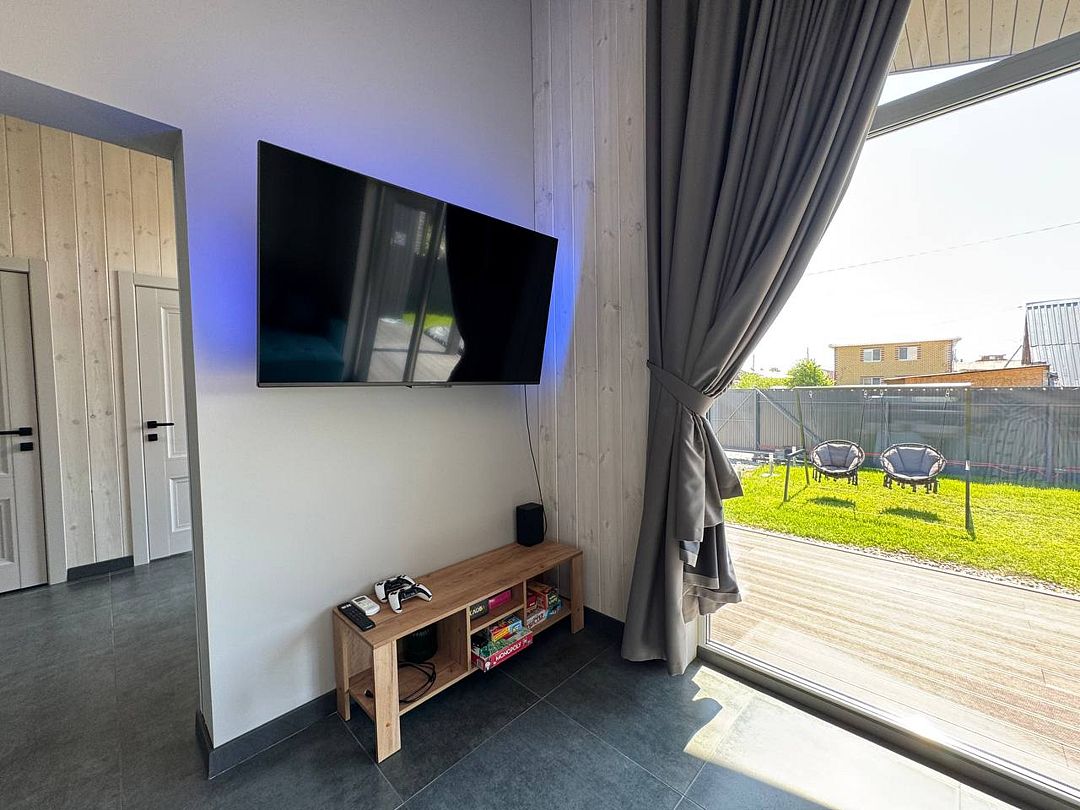 В этом доме царит атмосфера комфорта и уюта. Теплые полы по всему периметру обеспечивают приятное тепло, а кровати King-size подарят вам непревзойденный комфорт и глубокий спокойный сон. Шторы блэкаут в комнатах защищают от солнечного света, создавая идеальные условия для релаксации. Просторная гостиная оборудована большим телевизором с доступом к видеохостингам, а коллекция настольных игр сделает ваши вечера с друзьями еще более увлекательными.