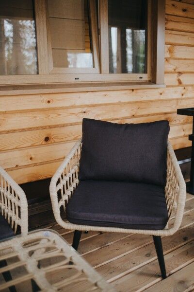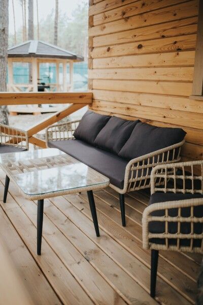 - Терраса с мебелью и шезлонгами позволяет наслаждаться свежим воздухом и природой.