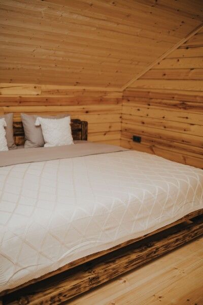 Комфорт: Чердачная спальня подарит романтическое настроение, просторная кухня-гостиная, зона отдыха и просторная терраса у чана обеспечивают достаточно пространства для отдыха и развлечений.