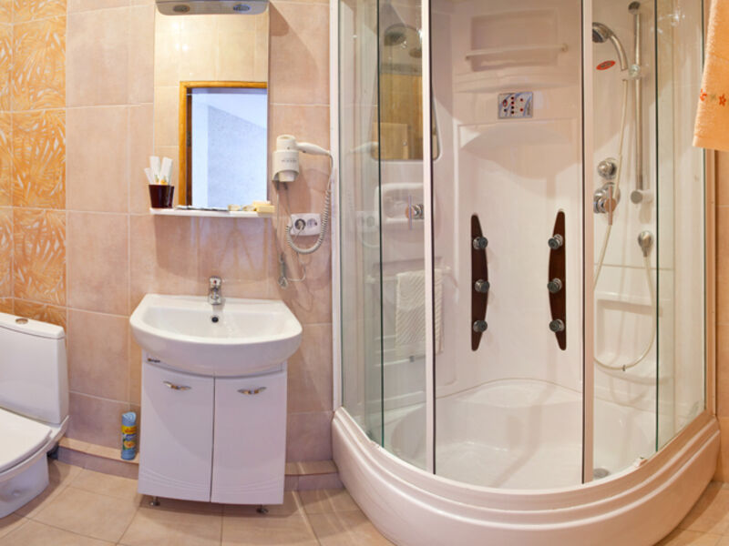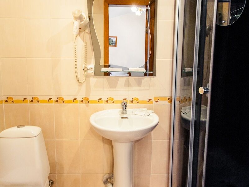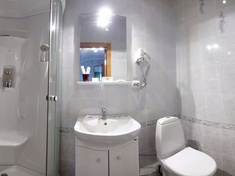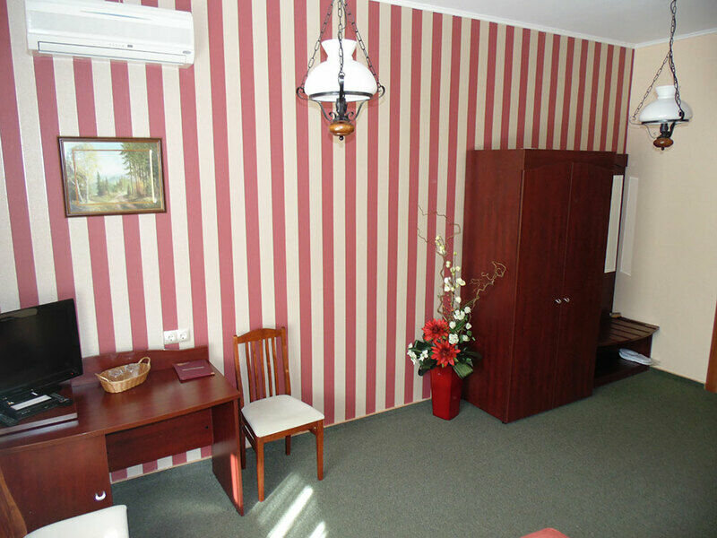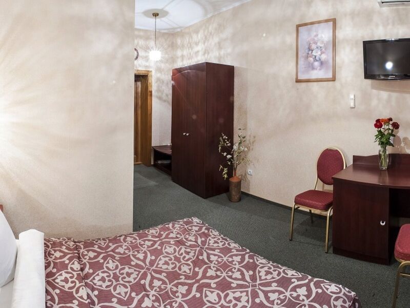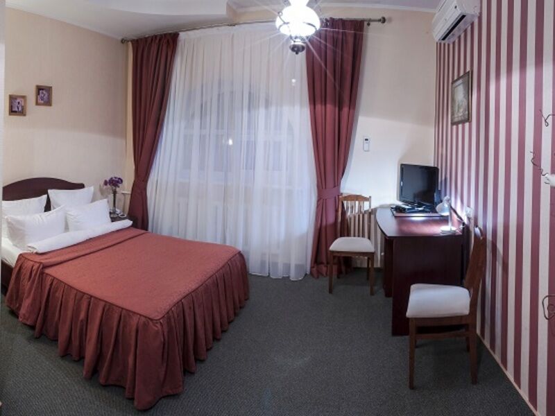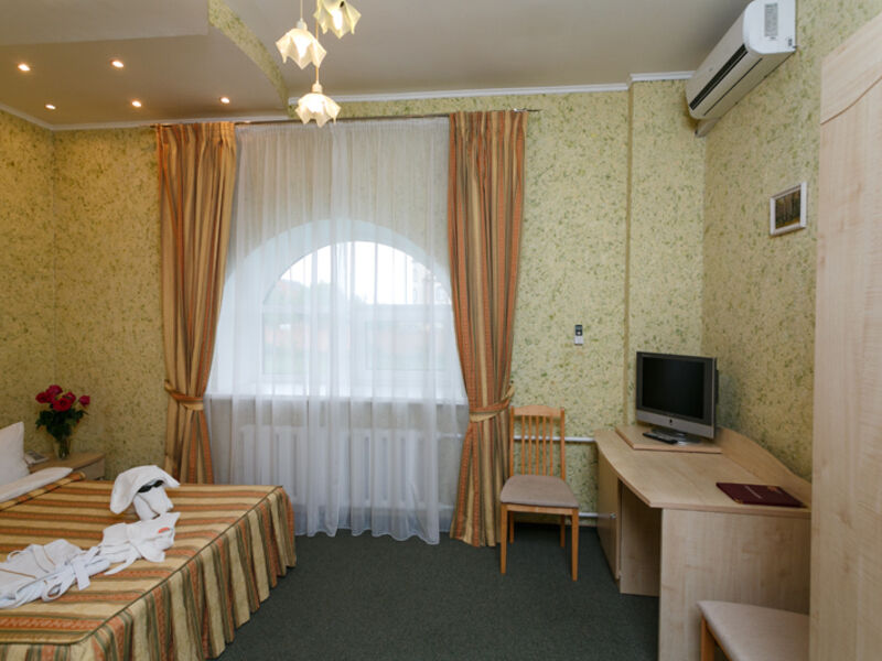 Однокомнатный: площадь 20 м, Номер оборудован: кровать(140 х 2010см), прикроватные тумбочки, настенное бра, шкаф-купе для одежды, телевизор, мягкие стулья, туалетный столик с зеркалом, кондиционер, мини-бар, ковровое покрытие. Ванная комната: Душ