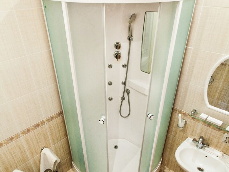 Однокомнатный: площадь 14 м, Номер оборудован: кровать(120х2010см), прикроватные тумбочки, настенное бра, компьютерный стол, мягкое кресло, стул, мини-бар, телевизор, кондиционер, плательный шкаф или шкаф- купе. Ванная комната: Душевая кабин.
