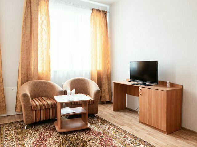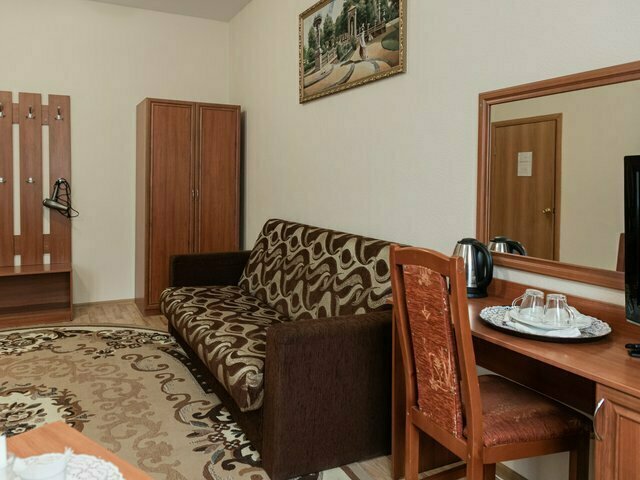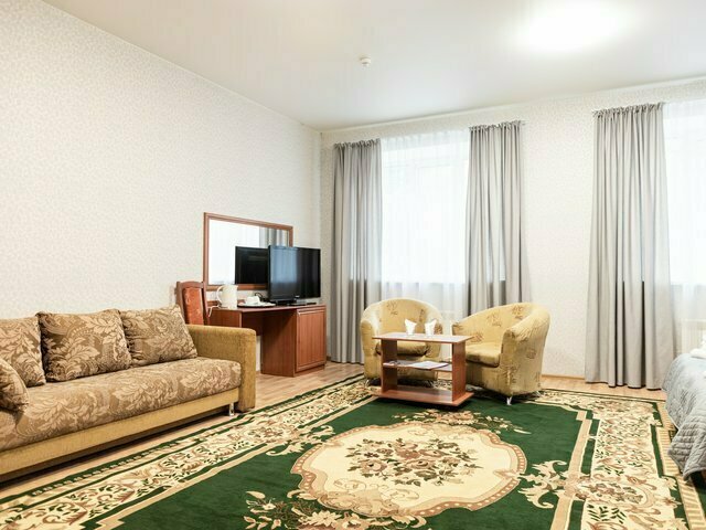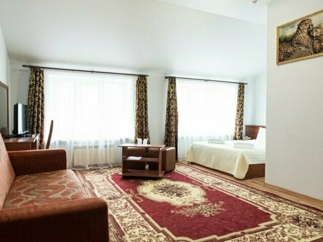 Кровать двуспальная, ТВ, шкаф, диван, 2 кресла, мини-холодильник, ванная комната