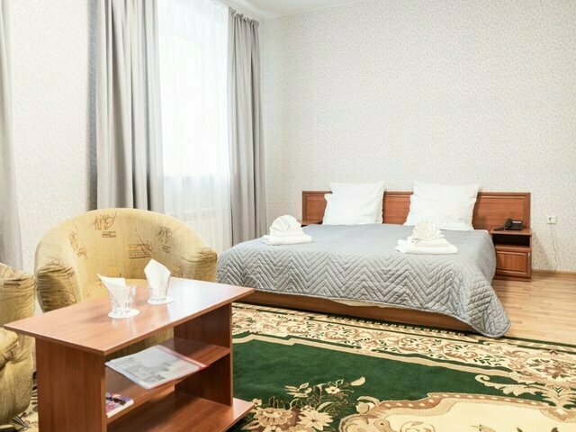 Гостиничный комплекс представляет собой трехэтажное здание. Гости размещаются в 1-4 местных номерах, каждый из которых оснащен всем необходимым. Во всех номерах имеется отдельный санузел, прихожая и телевизор. Номера класса полулюкс имеют расширенную комплектацию номера и набор услуг.