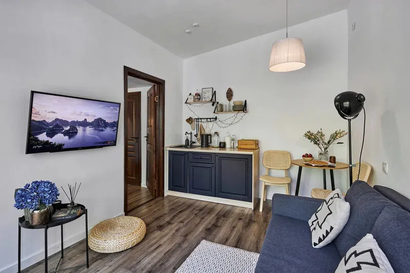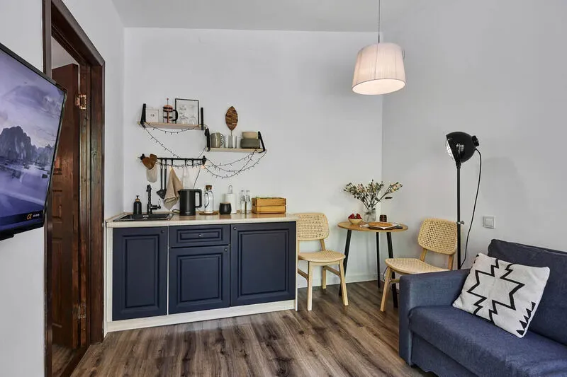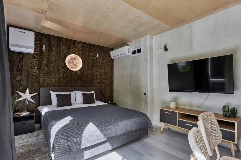 - на 2-4 человека (спальня с большой кроватью и диван в кухне-гостиной);