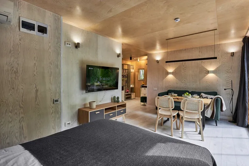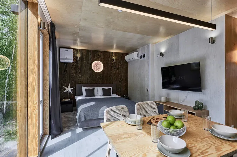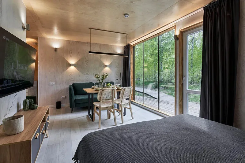 Подходит для романтичного отдыха вдвоем, а восхитительный вид на лес дополнит приятную атмосферу покоя и умиротворения.