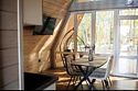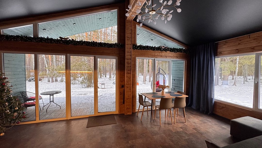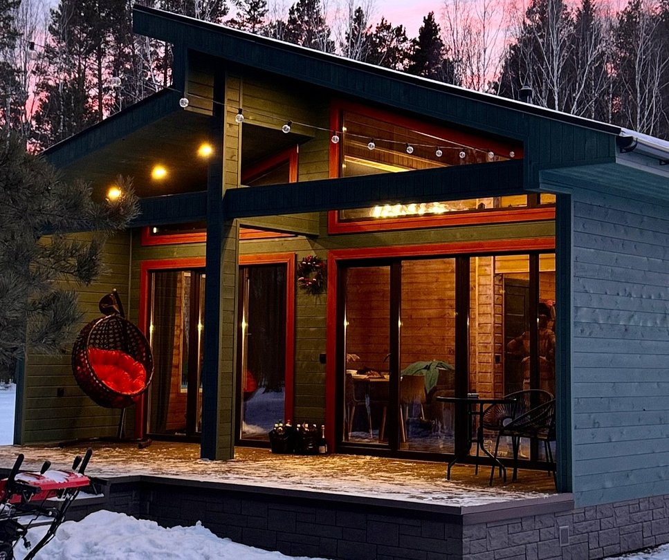 Гостевой дом занимает закрытую благоустроенную территорию на улице Калиновой. В распоряжении гостей стильные эко-домики, большинство из них выстроены в стиле а-фрейм. Внутри есть все необходимое для комфортного проживания: собственный санузел с душем, оборудованная мини-кухня с обеденной зоной, установлен кондиционер, телевизор, есть стиральная машина, а перед домиком – удобная меблированная терраса.