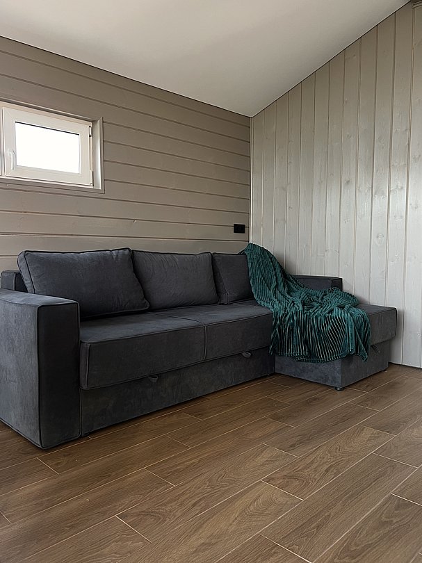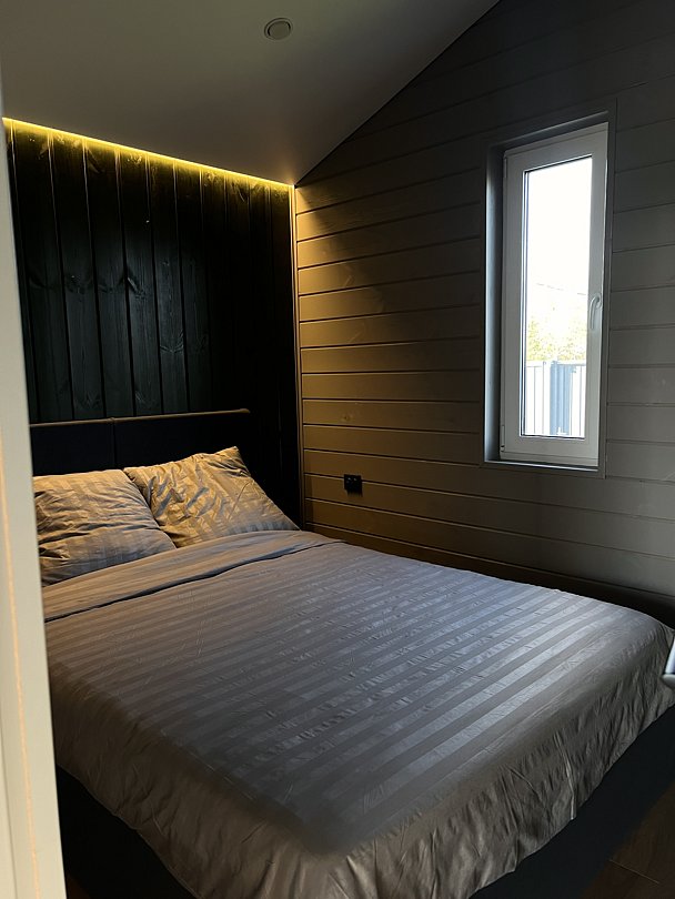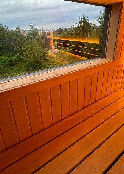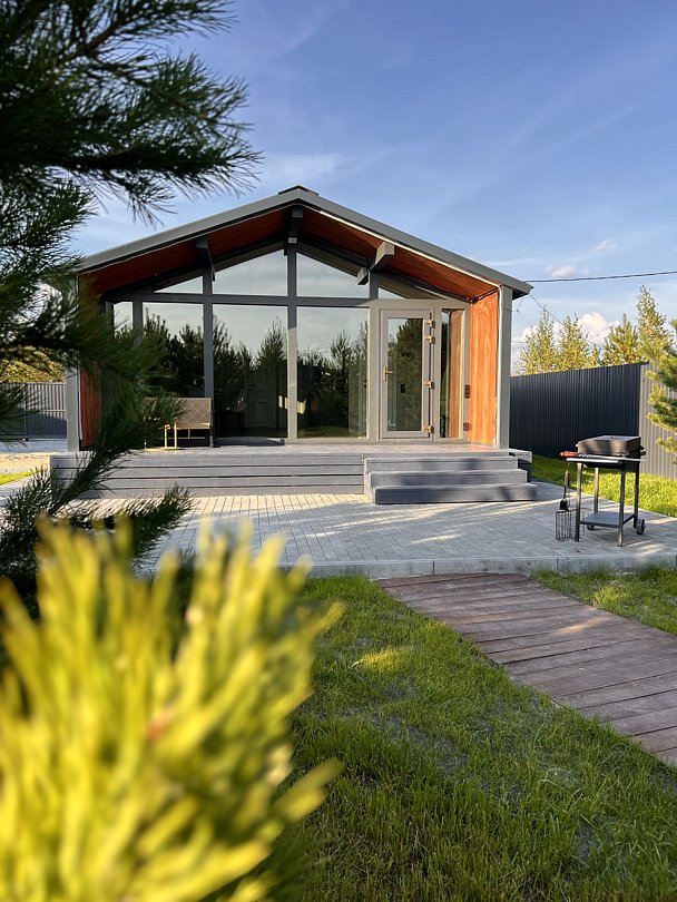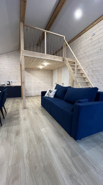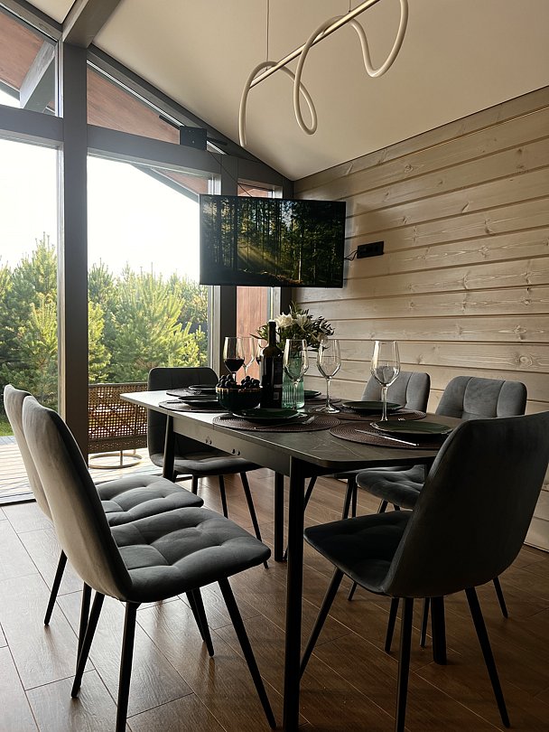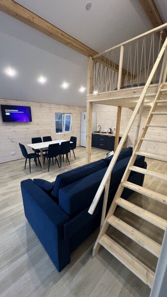 Уютные двуспальные кровати, оборудованная кухня и другие удобства панорамного барнхауса в сочетании с живописными пейзажами за окном позволят вам полностью погрузиться в атмосферу отдыха и спокойствия. Особого внимания заслуживает расположенная на территории база традиционная русская баня на дровах с теплыми полами и чаном под открытым небом, где можно насладиться целебным хвойным воздухом и снять накопившееся напряжение.