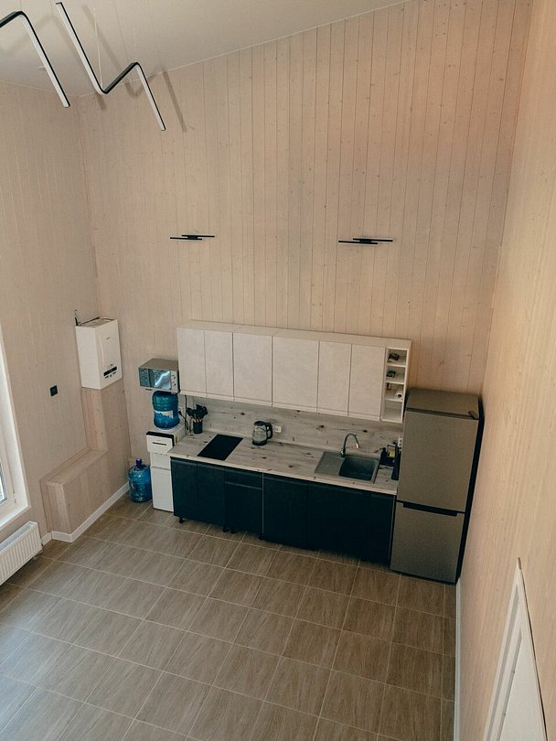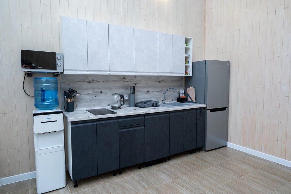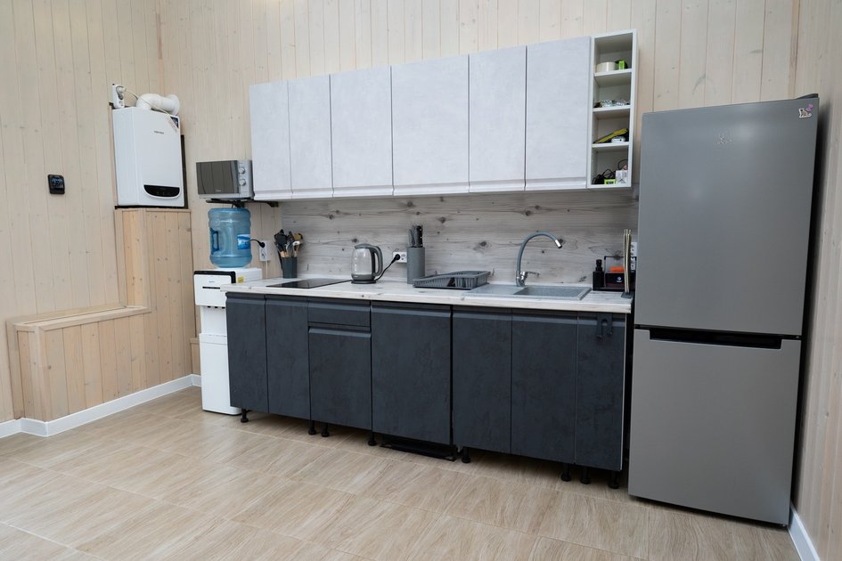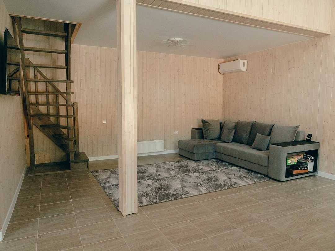 Внутри — три изолированные спальни, две ванных комнаты и просторная кухня-гостиная, оснащенная всем необходимым: современная техника, включая посудомоечную машину, холодильник, микроволновку и кулер с питьевой водой. Для развлечений предусмотрены телевизор, интернет Wi-Fi, сплит-система, а также настольные и активные игры.