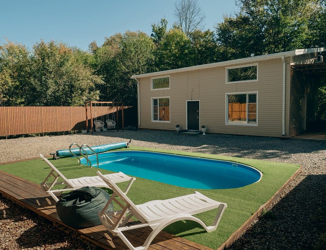 В доме есть телевизор, кондиционер, доступ в интернет, настольные и подвижные развлечения. В ванной комнате: гель для душа, шампунь, кондиционер, фен, полотенца (по три штуки на каждого гостя). На территории: терраса с большим пятиметровым столом. Мангальная зона: шампура, решетки. Бассейн с подогревом и подсветкой. Есть подвесные качели-гнезда и кресло-кокон. Парковка на три автомобиля.