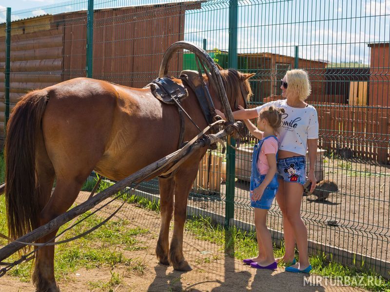 На территории комплекса есть Контактный Зоопарк, где проживают северные олени, маралы, медведь, кролики, козы, овцы, косуля, яки.