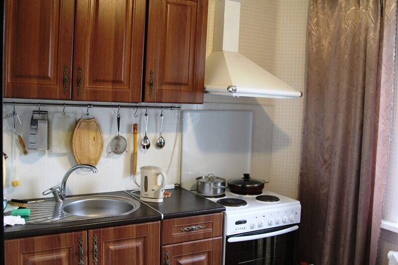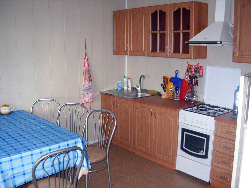 - Кухня (стол раздвижной, кухонный гарнитур, СВЧ печь, газовая плита, двухкамерный холодильник)