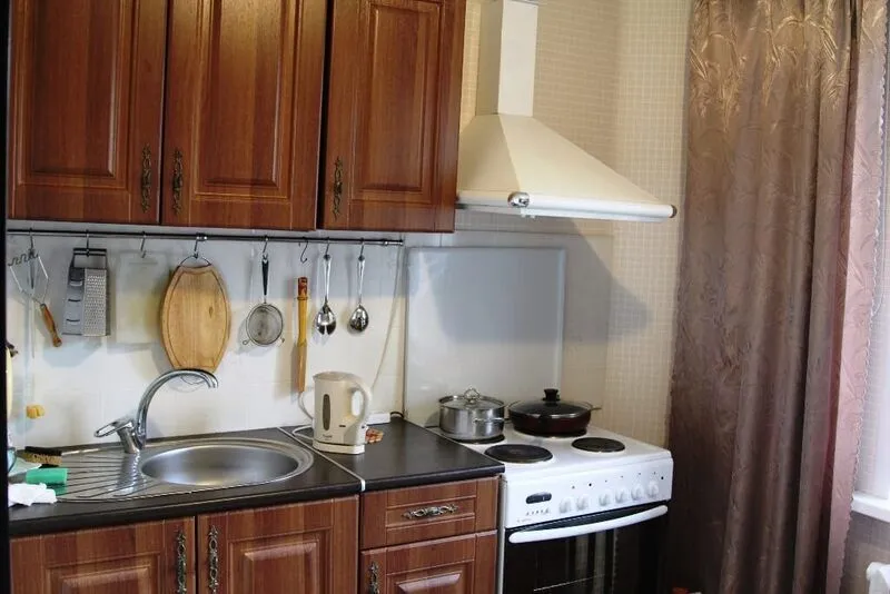 - Кухня (кухонный гарнитур, СВЧ печь, электрическая плита, двухкамерный холодильник)