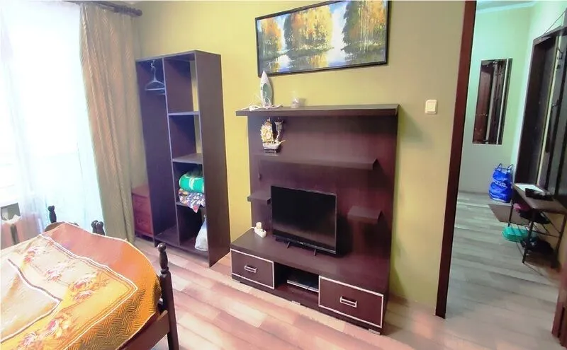 Однокомнатная квартира на первом этаже пятиэтажного панельного дома в 400 метрах от городка отдыха.