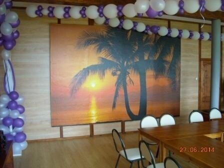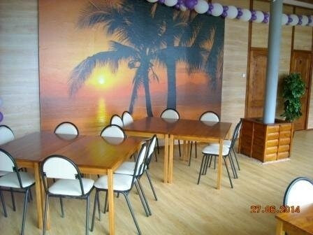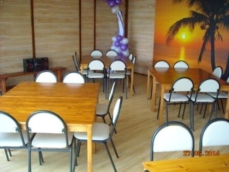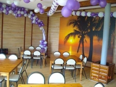 Банкетный зал (200 м²) на 80 человек, кухня, 2 туалета.