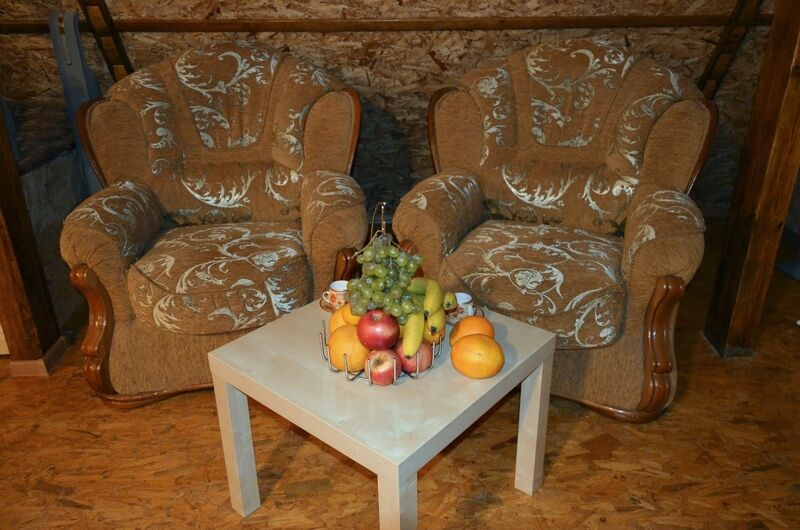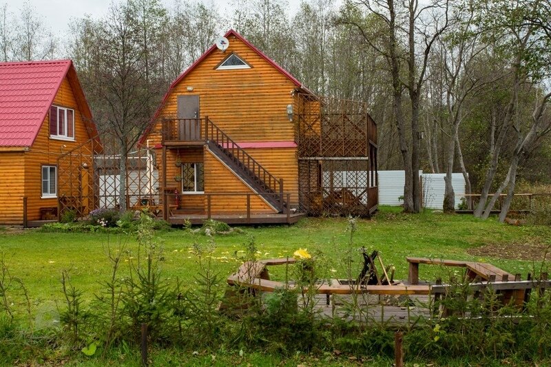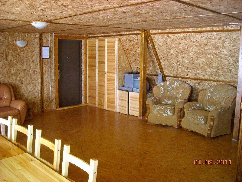 Имеется коттедж и летний домик. В коттедже можно останавливаться зимой, он обогревается. В доме гостиная с кухонным уголком, небольшой второй этаж с кроватью. Из гостиной можно попасть на веранду с прекрасным видом на озеро.