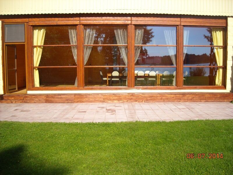 Большой зал(70 кв.м), 2 спальни, санузел. Панорамное остекление с видом на озеро. Мангал.