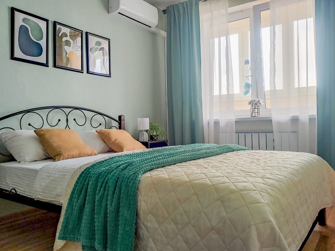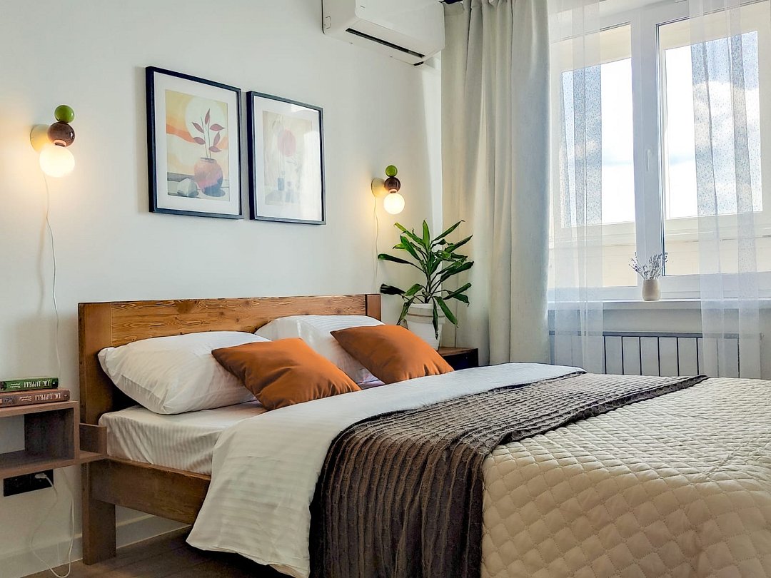 Классный Домик Уфа. Комфортная , стильная 1-комнатная квартира в ЖК Акварель на высоком этаже, с видом на речку и леса. Идеально подойдёт для семьи с ребенком, пары, командированным гостям. Уважаемые гости - эта квартира для некурящих. В квартире и на лоджии курить нельзя! Планируете долгое проживание? Обращайтесь к нам. Белое хлопковое постельное бельё, белые полотенца. Отчётные документы. Все способы оплаты. УМПО, ТЭЦ -10 минут пешком. Через дом торговый центр с кинотеатром, кафе, кулинарии, рынок. В самом доме три супермаркета. Бесплатный WI-FI; Смарт ТВ; Кондиционер; Высококачественная уборка перед заездом гостей; Водонагреватель; Видовая квартира с изолированной спальней, двуспальной кроватью с ортопедическим матрасом и удобным двуспальным диваном. Отдельная, нарядная укомплектованная кухня. Новая современная техника и мебель. Просторная лоджия. Живые комнатные цветы для уюта. Окна выходят на зелёный, частный сектор - у нас тихо. Парковка наземная/стихийная. Двор и все общие пространства в доме просматриваются камерами видеонаблюдения - у нас безопасно. Ночные посиделки, тусовки - штраф в размере залога с выселением. Паспорт и залог обязательны. Обязательное время тишины ночью с 22.00 до 08.00. Заезд с 15:00 ч.,выезд до 12:00 ч. Иногда размер залога может меняться. Бронируйте и приезжайте к нам!В номере