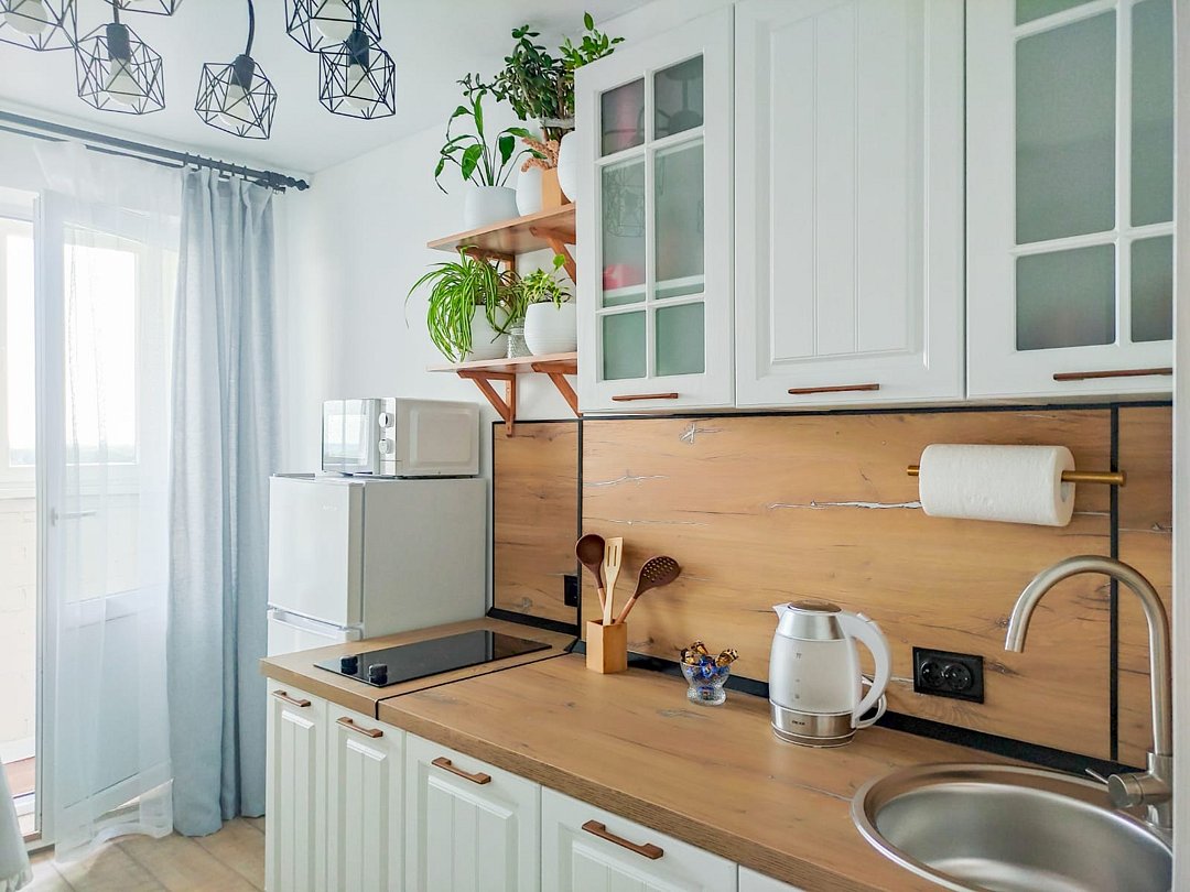 Классный Домик. 1-комнатная квартира с просторной кухней и видом на лес.