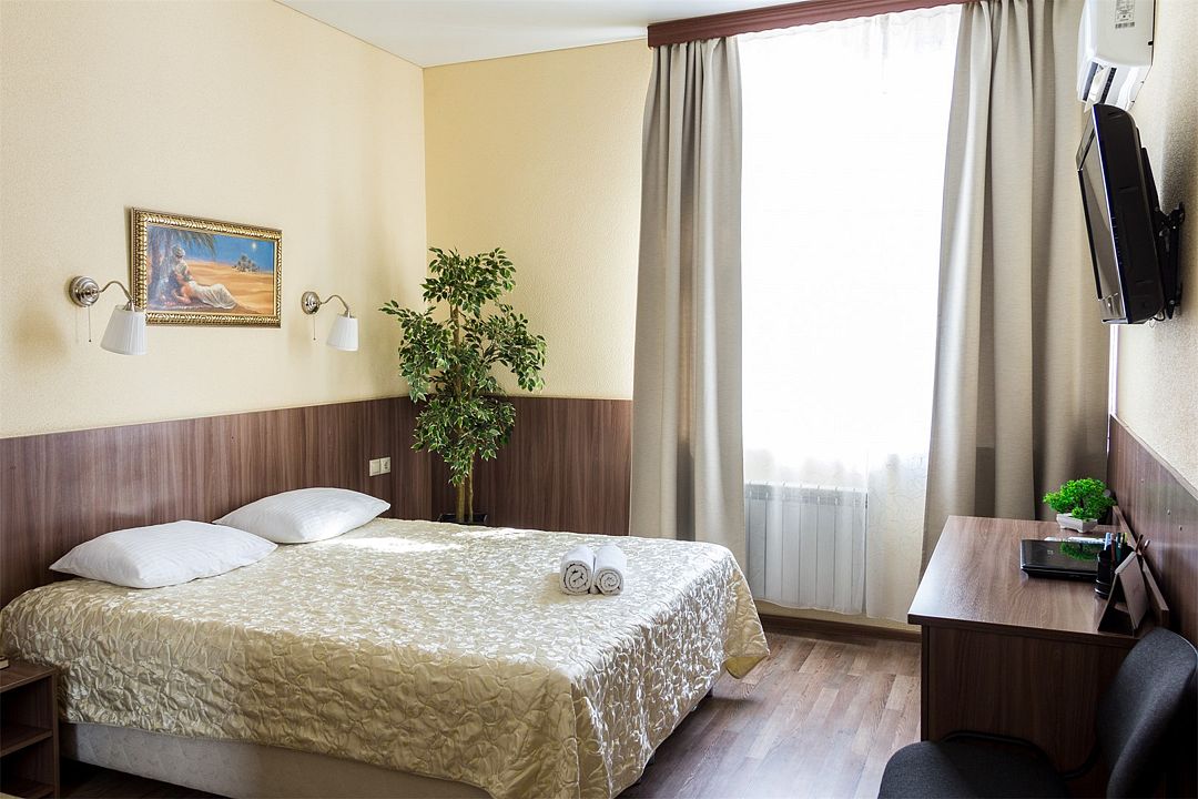 Номер категории «Двухместный Стандарт» общей площадью 25 кв. метров выдержан в цветовой гамме теплых оттенков и идеально сочетает в себе стиль и комфортность.