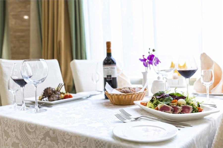 Утром приглашают вас на континентальный завтрак или шведский стол. В обед, при групповых заездах, по предварительной заявке также возможны приготовление бизнес-ланча и ужина. В ресторане проводим торжественные мероприятия банкеты, свадьбы, корпоративные вечера.