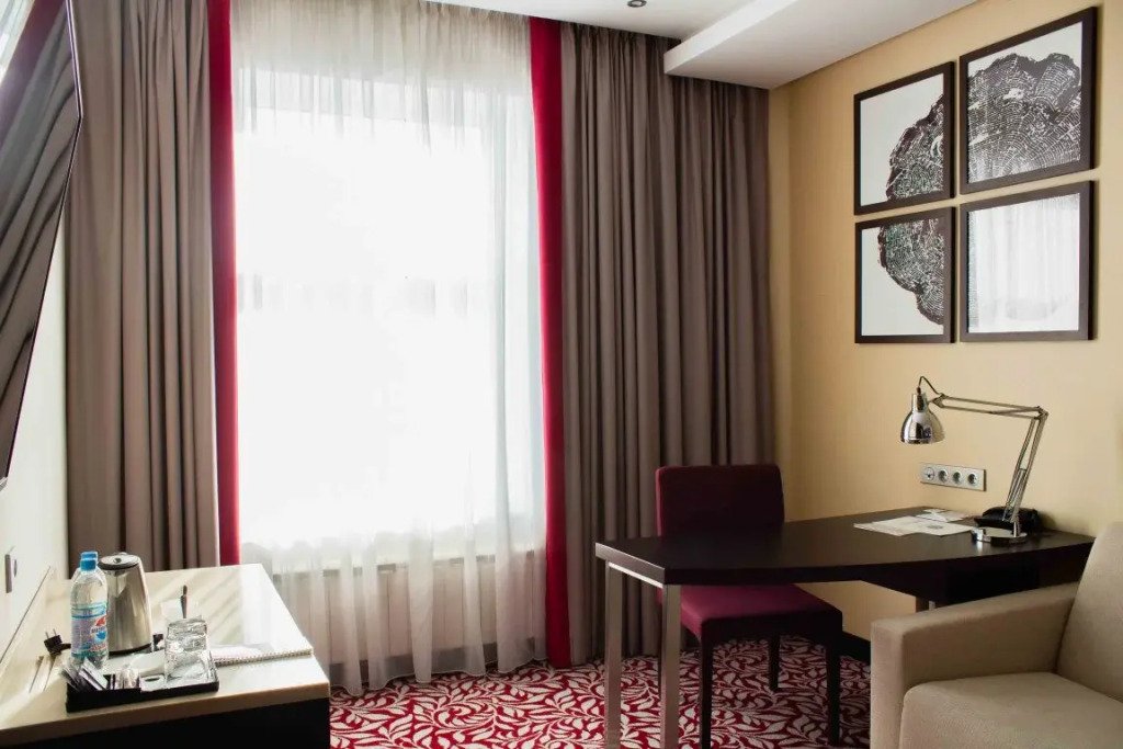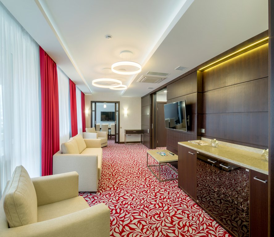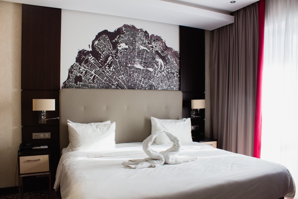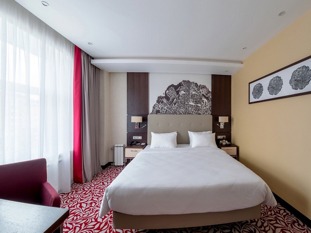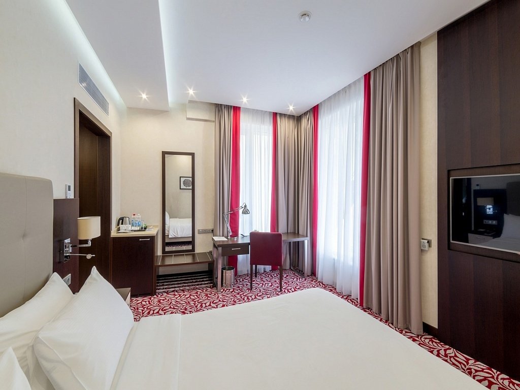 В отеле 211 номеров. В номерах: рабочий стол, LCD телевизор с подключенным IP-телевидением, сплит-система, сейф, телефон, радио-будильник, чайник, чайный набор, минеральная вода, утюг, гладильная доска, бесплатная сеть Wi-Fi, за дополнительную плату доступен мини-бар. В распоряжении гостей ванная комната, фен, косметический набор, а некоторых номерах — комплект, включающий полотенца, халат, тапочки, который в другие номера может быть предоставлен по запросу.