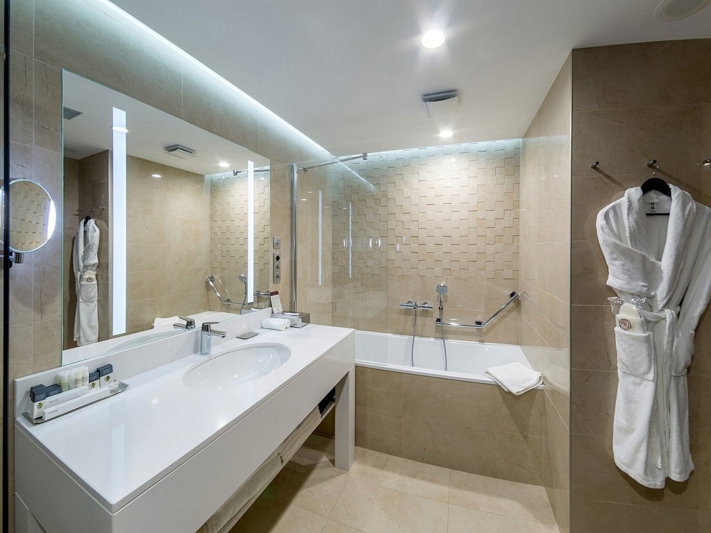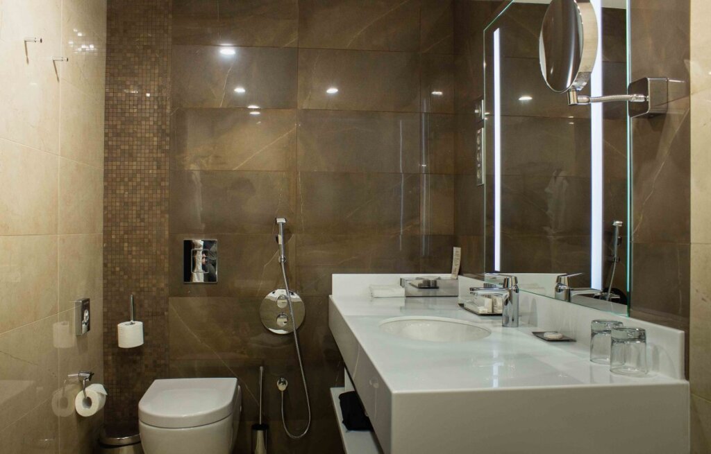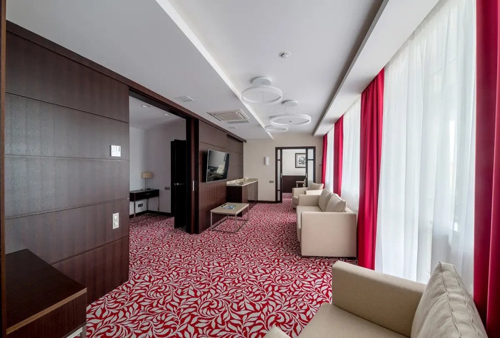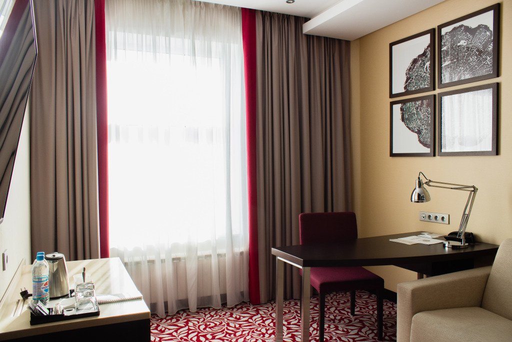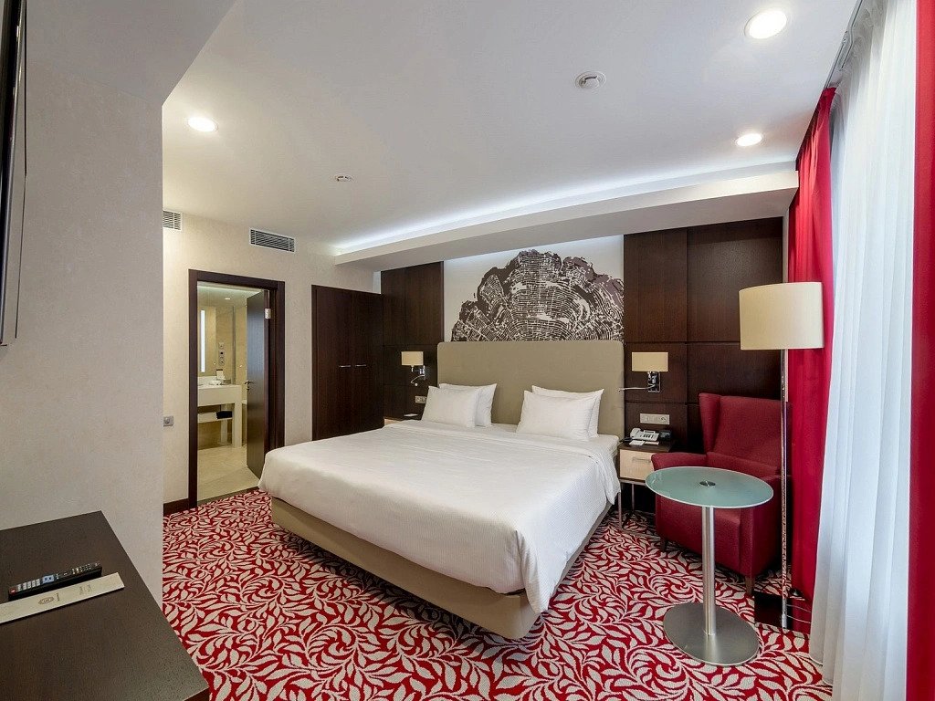 В отеле 211 номеров. В номерах: рабочий стол, LCD телевизор с подключенным IP-телевидением, сплит-система, сейф, телефон, радио-будильник, чайник, чайный набор, минеральная вода, утюг, гладильная доска, бесплатная сеть Wi-Fi, за дополнительную плату доступен мини-бар. В распоряжении гостей ванная комната, фен, косметический набор, а некоторых номерах — комплект, включающий полотенца, халат, тапочки, который в другие номера может быть предоставлен по запросу.