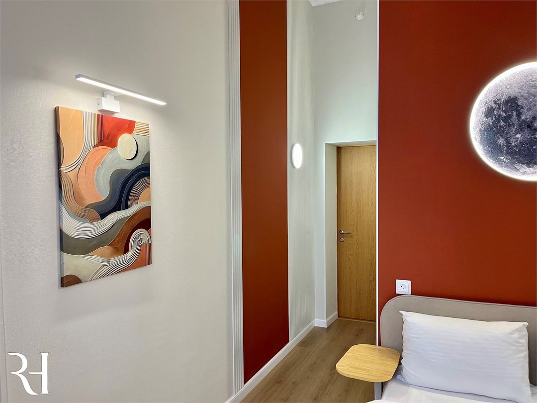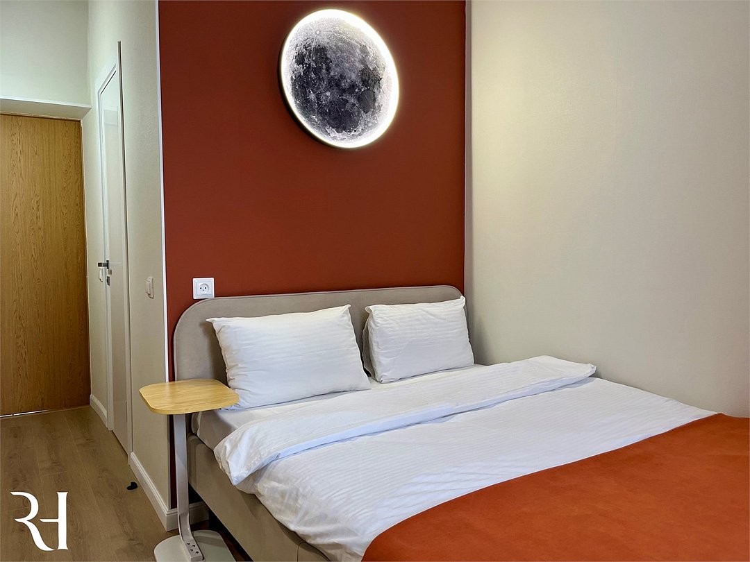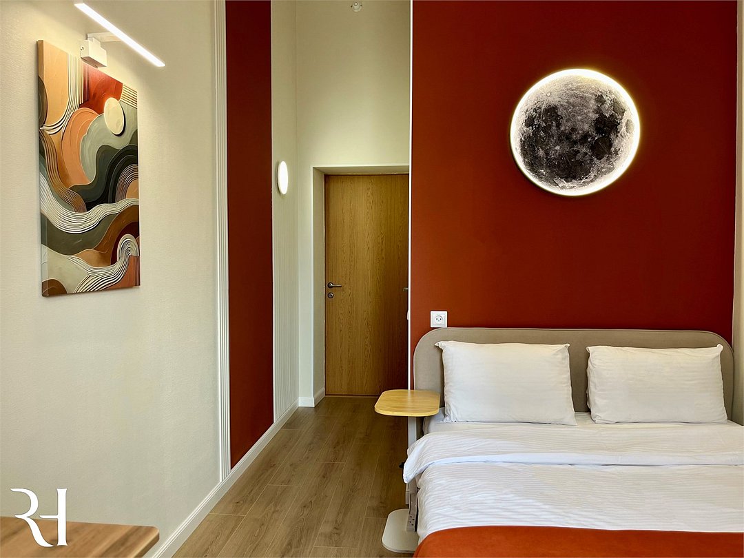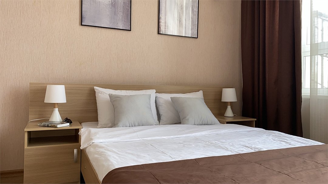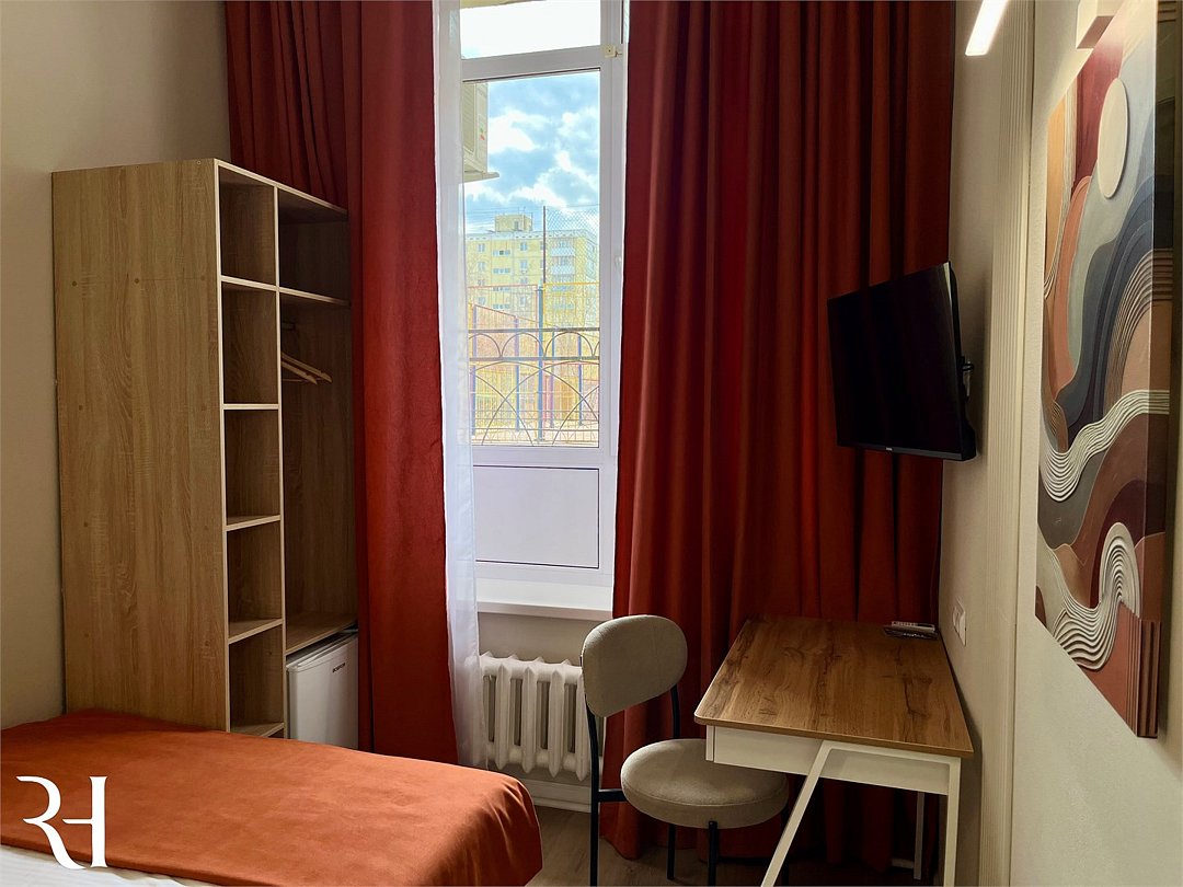 Уютный двухместный номер с кроватью, собственной ванной комнатой и общей кухней удобен для проживания гостей с детьми и отлично подходит как для деловой поездки, так и для длительного проживания. Оснащение номеров включает удобную мебель, кондиционер, кабельноеТВ, WI-FI, холодильник, санузел, душевую кабину, косметическое зеркало, туалетные принадлежности, банные полотенца.Услуги и удобства