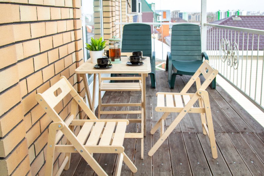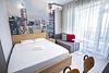 Апартаменты с кондиционером и собственной террасой. Индивидуальная терраса оборудована столиком и диваном, с прекрасным видом на реку и город. В апартаментах двуспальная кровать, столик для макияжа, шкаф, стол, так же холодильник, чайник и микроволновая печь, телевизор, WI-FI. Очень удобно для размещения 1-2 человек. Просторная комната площадью 23 м2.