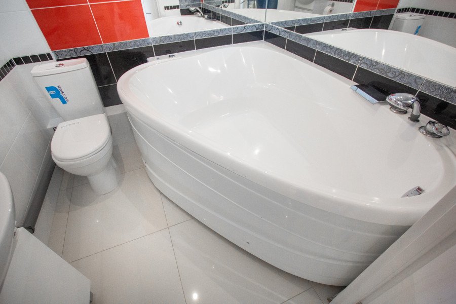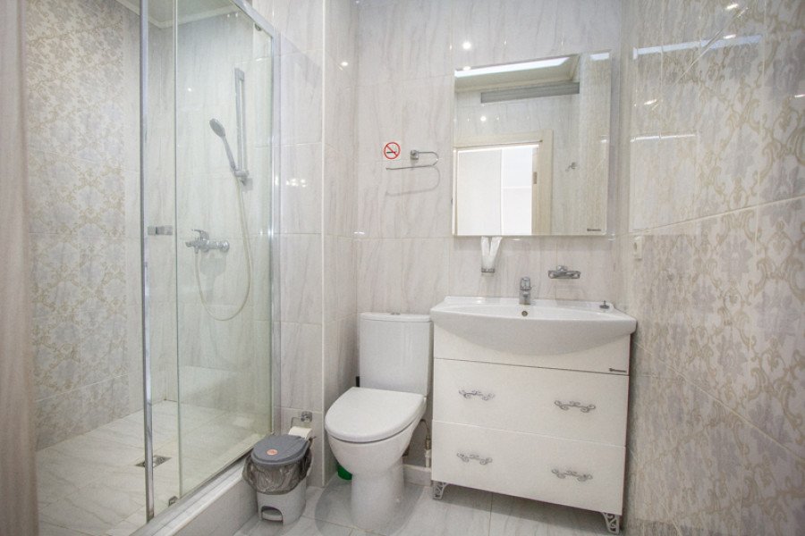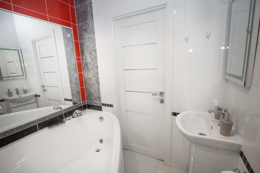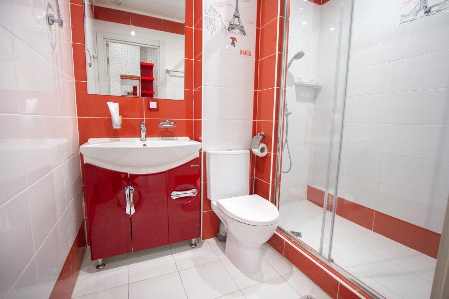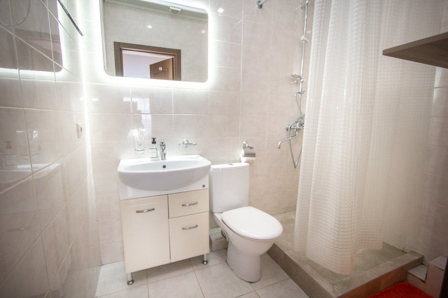 Санузел с просторной душевой, туалетными принадлежностями, комплектом полотенец, феном, парой халатов. Апартаменты идеально подойдут как для бизнес-путешественников, для отдыха семьей, а также для празднования знаменательных событий (свадьба, годовщины, романтические встречи).