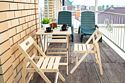 С панорамных окон открывается шикарный вид на лес и реку. Оборудованная просторная терраса двадцать квадратных метров укомплектована для Вашего удобства столовой, мебелью, качелями и лежаками для принятия солнечных ванн.
