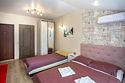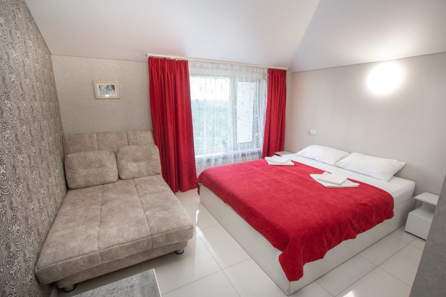Просторная студия площадью 45 м2, одна на этаже, с залом и спальней. Полноценная кухня с варочной поверхностью, холодильник, посуда. В каждой комнате телевизор, WI-FI. Отличная альтернатива загородному дому! В номере Family с выходом во внутренний дворик вы можете спокойно отдыхать, наблюдая как дети играют на свежем воздухе у Вас на виду. Оборудованная терраса и мангал, станут отличным дополнением для хорошего времяпровождения.
