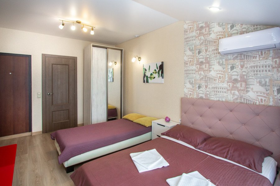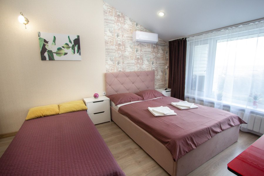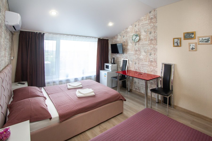 Для Вашего удобства: кондиционер, холодильник, микроволновка, чайник, обеденный стол. Двуспальная и односпальная кровати, отлично подойдет для размещения семьи.