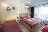 Просторная студия с балконом на двух-четырех человек, оформленная в эко-стиле. Студия оборудована двухспальной кроватью 160х200 с ортопедическим матрасом и большим раскладным диваном.
