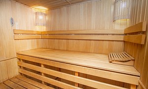 Инфраструктура: тапочки, зона отдыха, полотенца, простыни, шапочки, душ, чай/угощения, халатыСемейная сауна с функцией подачи воды, а также индивидуальными душевыми, санузлом и раздевалками. Комната отдыха оборудована мебелью, включающей диван и стол на четыре персоны, оснащенный мультимедийным устройством Smart TV, беспроводным доступом в интернет (Wi-Fi), холодильником, микроволновой печью и электрическим чайником, что обеспечивает комфортные условия для завершения банных процедур.