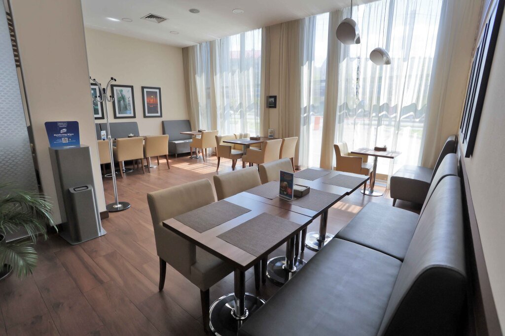 Отель «Hampton by Hilton Уфа» находится в Уфе. Этот отель располагается на одной из главных улиц города. До отеля можно добраться как на автомобиле, так и на общественном транспорте. В шаговой доступности находятся: торговые центры, парк им. Якутова, сквер 50-ти летия Победы, сквер Борцам революции, Уфа-Арена, Тинькофф-холл, несколько ресторанов и кафе.