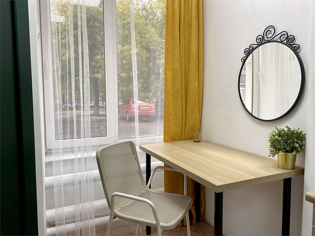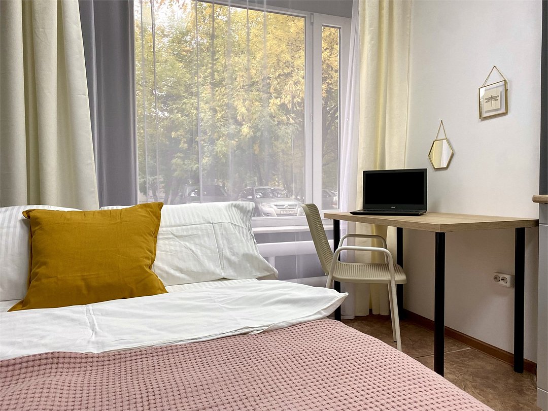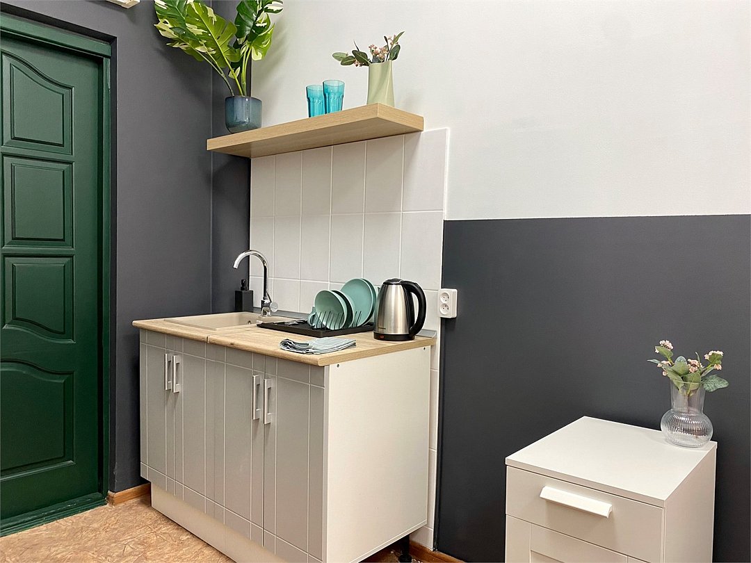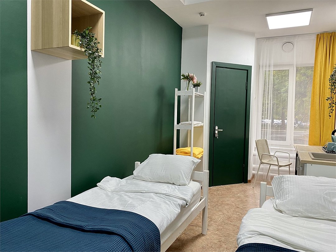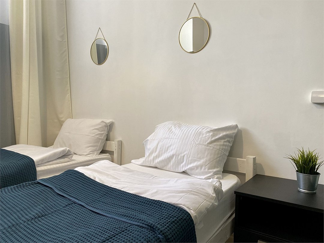 Двухместный отдельный номер с двумя раздельными кроватями оформлен в современном стиле с использованием теплых оттенков, создающих атмосферу уюта и комфорта. Окна выходят на тихую улицу или внутренний дворик отеля, благодаря чему в комнате всегда тихо и спокойно. Номер с мини-кухней – это удобное решение для тех, кто хочет иметь возможность быстро перекусить без необходимости выходить из номера. Рабочий стол с удобным стулом – идеальное место для работы за ноутбуком или чтения книги. Также есть бесплатный Wi-Fi. Общая ванная комната на этаже оснащена душевой кабиной, феном и комплектом туалетных принадлежностей. Мы предоставляем гостям полотенца.Стандартный 2-х местный номер №4 Раздельные кровати