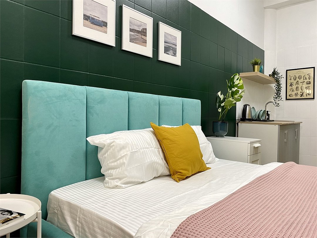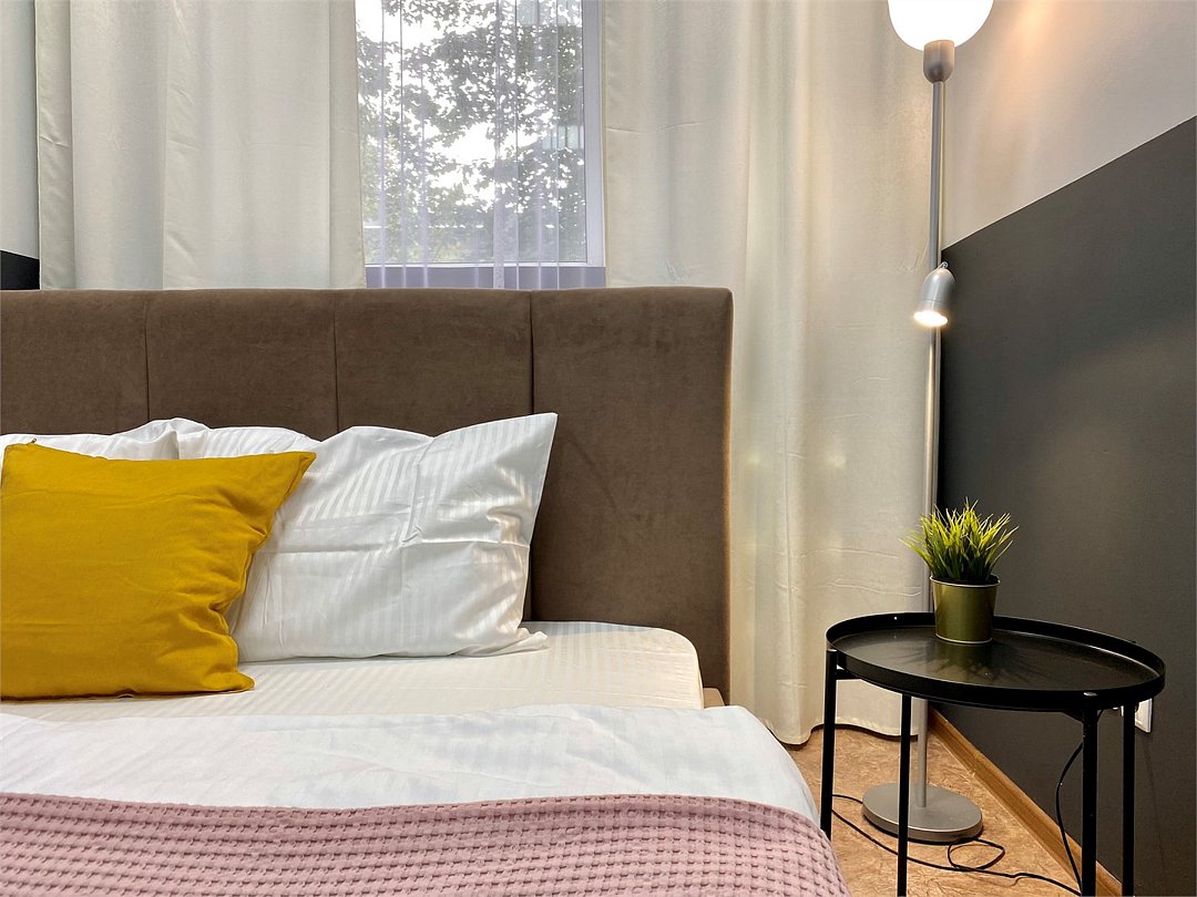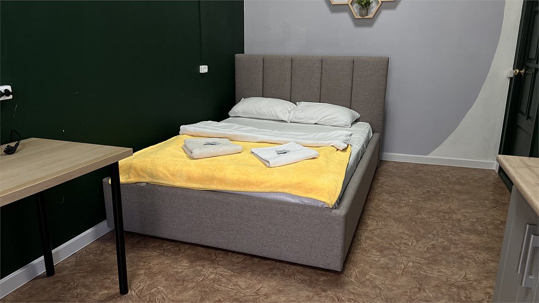 Двухместный отдельный номер с двумя раздельными кроватями оформлен в современном стиле с использованием теплых оттенков, создающих атмосферу уюта и комфорта. Окна выходят на тихую улицу или внутренний дворик отеля, благодаря чему в комнате всегда тихо и спокойно. Номер с мини-кухней – это удобное решение для тех, кто хочет иметь возможность быстро перекусить без необходимости выходить из номера. Рабочий стол с удобным стулом – идеальное место для работы за ноутбуком или чтения книги. Также есть бесплатный Wi-Fi. Общая ванная комната на этаже оснащена душевой кабиной, феном и комплектом туалетных принадлежностей. Мы предоставляем гостям полотенца.Стандартный 2-х местный номер №6 Двуспальная кровать