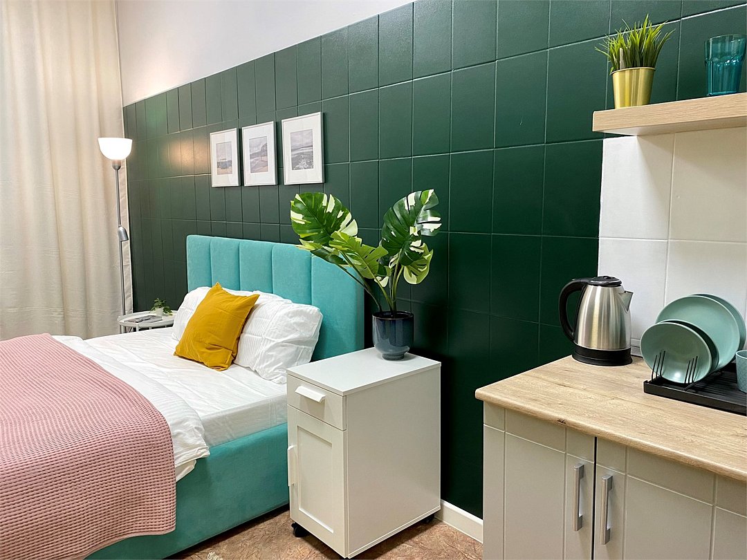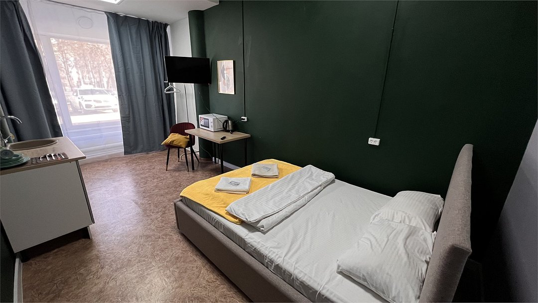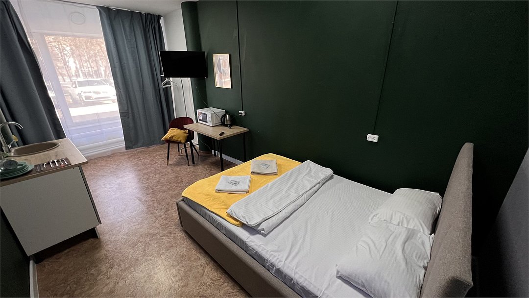 Двухместный отдельный номер с двуспальной кроватью оформлен в современном стиле с использованием теплых оттенков, создающих атмосферу уюта и комфорта. Окна выходят на тихую улицу или внутренний дворик отеля, благодаря чему в комнате всегда тихо и спокойно. Номер с мини-кухней – это удобное решение для тех, кто хочет иметь возможность быстро перекусить без необходимости выходить из номера. Бесплатный Wi-Fi. Общая ванная комната на этаже оснащена душевой кабиной, феном и комплектом туалетных принадлежностей. Мы предоставляем гостям полотенца.Услуги и удобства